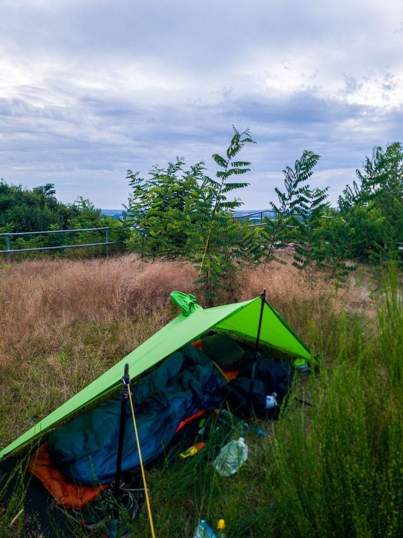 Ich habe tatsächlich nie ein Zelt dabei, da ich mich immer direkt in die Schutzhütten reinlege. Davon haben wir in Deutschland so viele, dass (für mich) ein Zelt nur unnötiges Gewicht ist ^^. Ich kann aber gut verstehen, dass das nicht für jeden etwas ist. Manche Hütten sind schon eher dreckig, oder für viele auch zu nah an der Zivilisation. Auf dieser Tour hatte ich noch für den Notfall mein StS Pochotarp dabei, falls es doch mal keine Hütte geben sollte. Das habe ich dann auch an Tag 5 gebraucht.