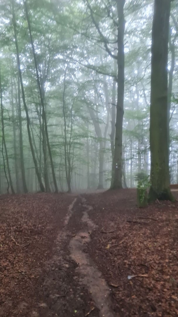 Die Nacht in der Spitzbubenhütte war sehr gut und ich konnte ein bisschen Schlaf nachholen. Als ich aber aufwachte, musste ich feststellen, dass in den Morgenstunden eine dichte Nebelsuppe aufgestiegen war und eigentlich alles von mir mit einem Wasserfilm überzogen war. Darauf erstmal einen warmen Kaffee! Bald darauf war ich wieder unterwegs und füllte am Friedhof von Weisweiler nochmal mein Wasser auf. Auch die offenen Toiletten waren hier wieder ein Highlight.
