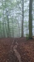 Irgendwann musste ich aber los und lief bei leichtem Regen weiter. Hier verabschiedete sich der Saarlandrundwanderweg endgültig von Saar-Hunsrück-Steig. Der Weg war zunächst unspektakulär, bis ich plötzlich von mehreren Rehen besucht wurde. Toll!