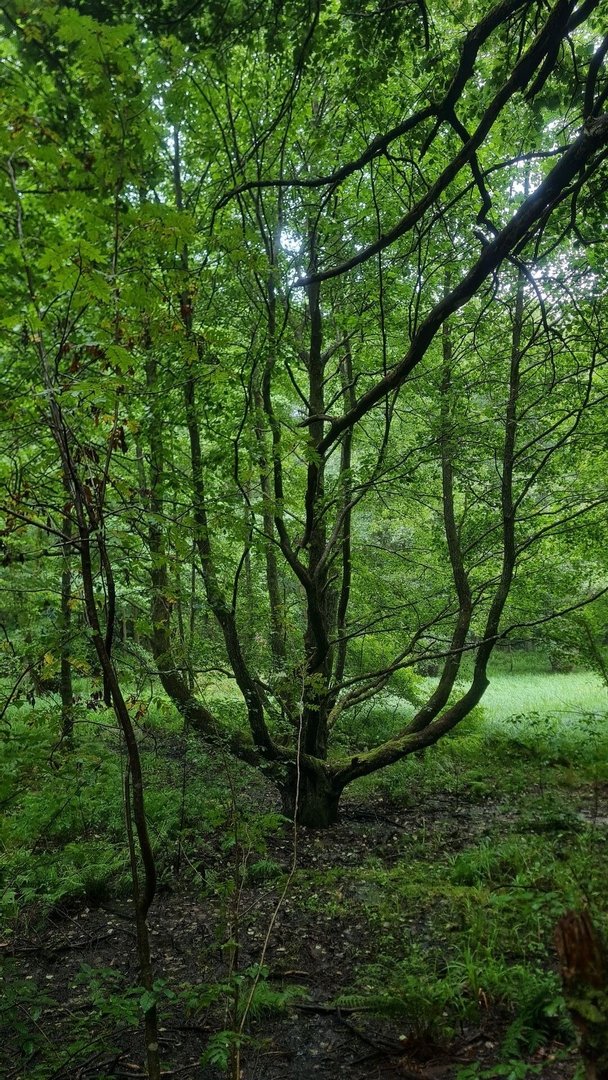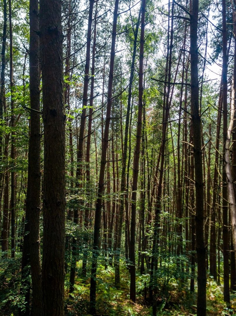 Dann ging es für viele Kilometer durch verschiedene Wälder. Die Wälder waren klasse und richtig wild, die Wege leider oft sehr breit. Aber es ließ sich sehr gut laufen. Zwischendurch gab es einzelne Fernsichten. Und dabei fiel mir das erste Mal so richtig der Kontrast in dieser Ecke des Saarlands zwischen den riesigen grünen Wäldern und der Hochindustrie auf. Ein spannender Kontrast, den es sonst in Deutschland so wohl nicht nochmal gibt. Erst am nächsten Tag würde mir auffallen, woran mich dies erinnerte...