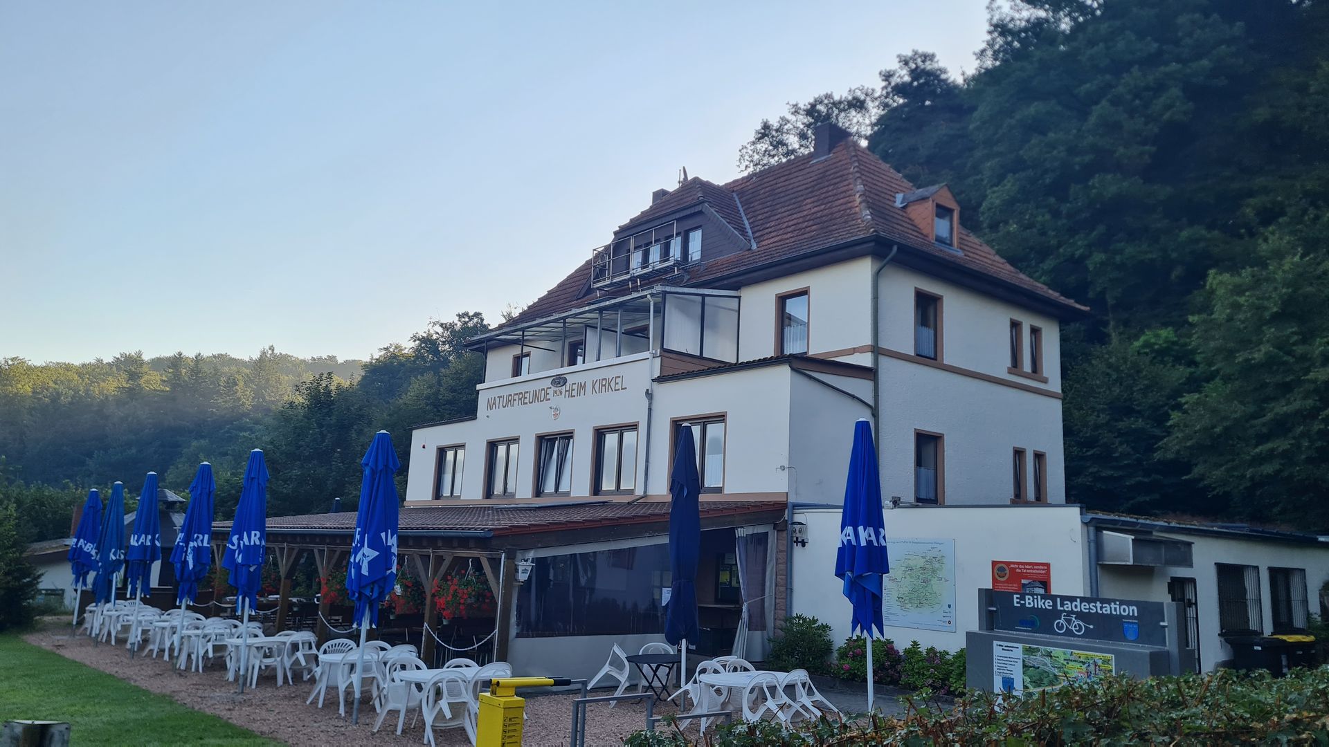 Früh um 6:00 Uhr klingelte für mich der Wecker. Dann schnell Sachen packen und los. Die zwei Nächte im Naturfreundehaus waren super. Gut erholt ging es aus Kirkel raus und direkt wieder steil den Berg hoch. Kurz hinterm Ortsausgang besuchte ich noch das Pfälzerwald Haus, eine weitere Einkehrmöglichkeit für Wanderer, wo ich mir mein Frühstück zubereitete.