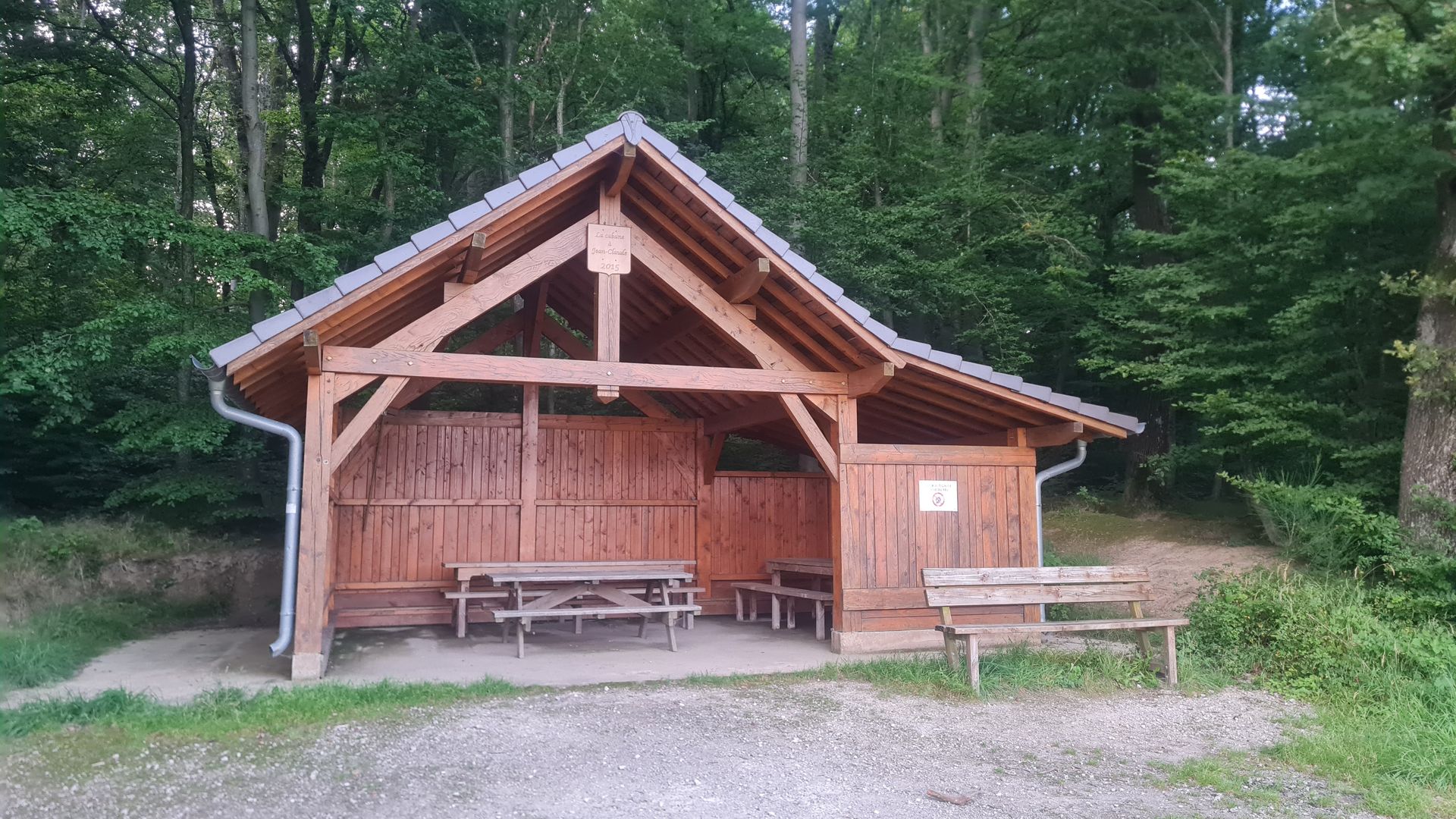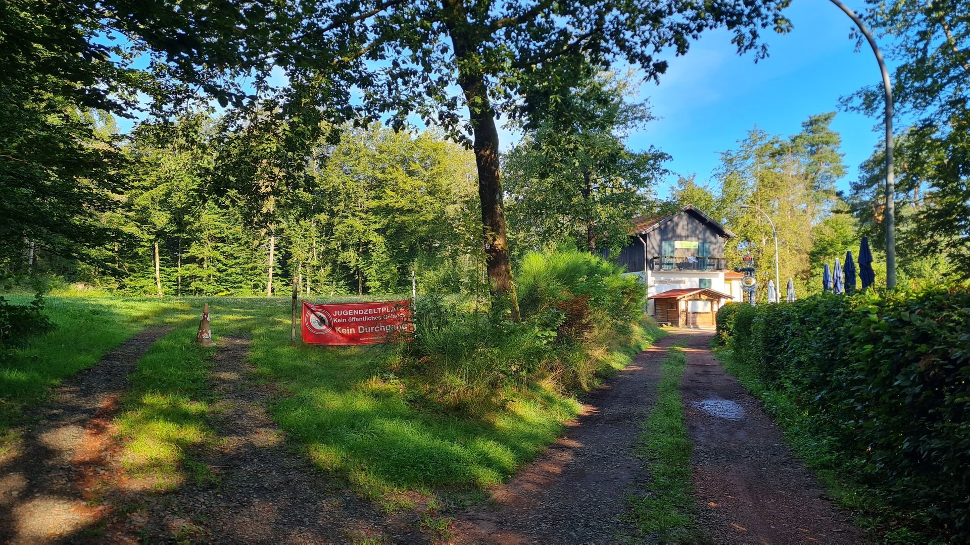 Unser Tagesziel war die Grillhütte bei Ludweiler. Als wir dort ankamen, war dort gerade noch jemand am Rasenmähen. Wir setzten uns erstmal hin, ehe der Mann zu uns kam und uns fragte, was wir hier wollen. Ich antwortete ehrlich, dass wir hier übernachten wollten. Zunächst eröffnete er uns, dass man ohne Genehmigung und Anmeldung das Gelände gar nicht betreten dürfe. Als er aber merkte, dass wir tatsächlich nur harmlose Wanderer waren, erteilte er uns die offizielle Erlaubnis und schloss uns sogar noch das Klo auf! Ich war sehr froh, denn nach 44 Tageskilometern wollte ich wirklich nur sehr ungern weiter.