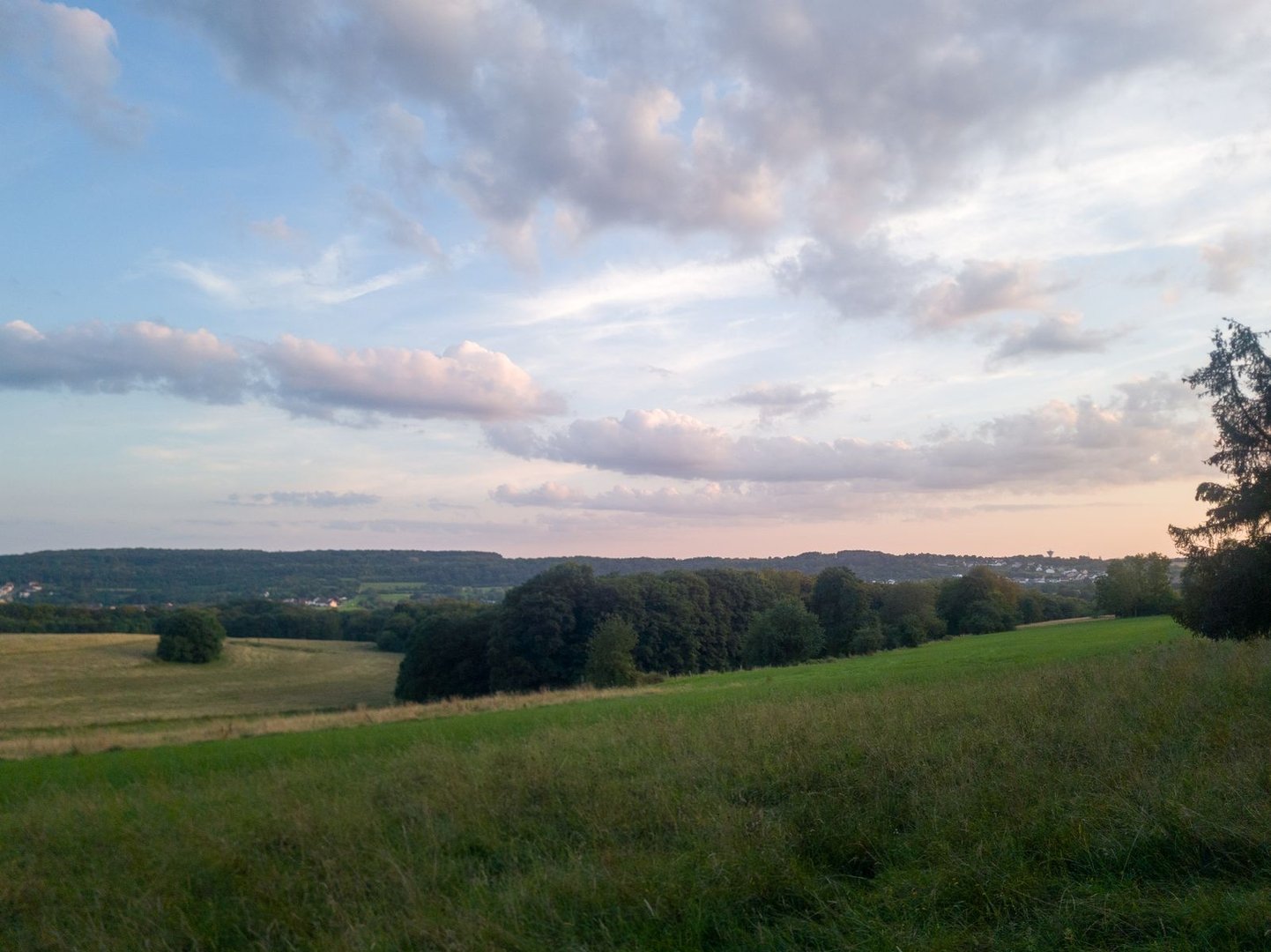 Aber schon bald darauf brachen wir wieder auf. Immerhin sollte es heute bis zur Saarschleife gehen. Dort würden wir nämlich noch jemanden treffen. So stiegen wir von der Siersburg ab, überquerten schon bald die Nied und bogen ins schöne, wenn auch sehr kurze, Metzerbachtal ein. Dann ging es wieder über die Saargau-typischen Wege des vorherigen Tages. Bei bestem Wetter genossen wir Fernsichten bis tief nach Frankreich hinein. In Mondorf gab es dann auf dem Friedhof eine erste längere Pause.