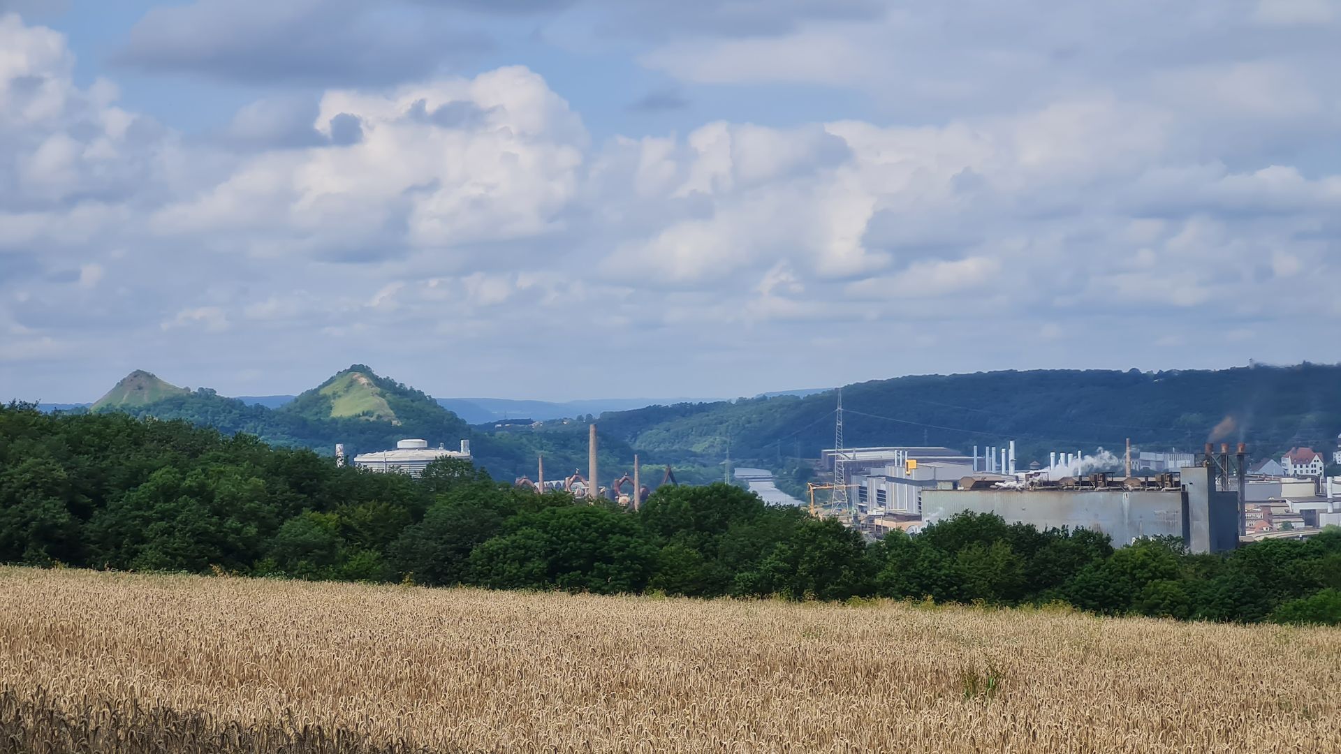 In Duisburg, direkt am Rhein gelegen, gibt es ein Stahlwerk, mit einer direkt daneben liegenden, begrühnten Halde.