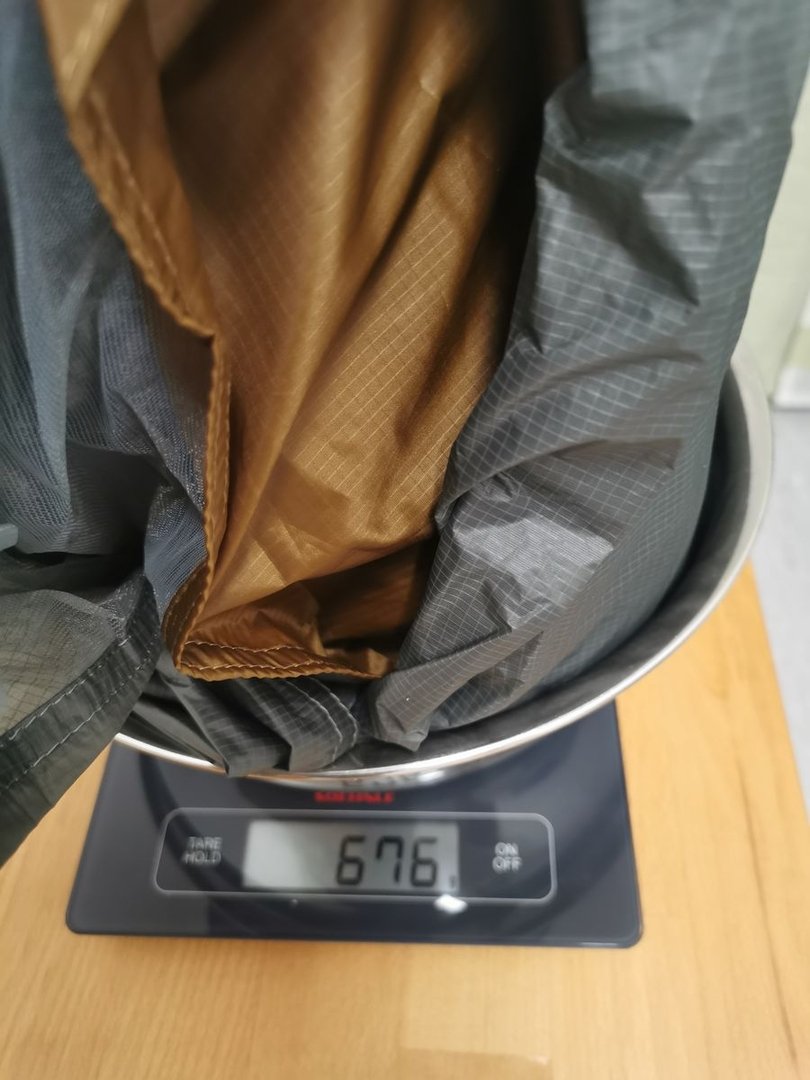 Mit reichlich Silnet und zwei Gummileinen an den Eingängen komme ich auf etwas über 700 Gramm für das Zelt.