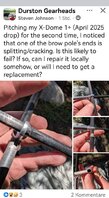 Das Gestänge verfügt über Kreuzungspunkte, "Y"-Verbindungen, Hubs, wie man sie auch immer nennen will. Das erschwert oder verhindert den schnellen Einsatz einer Reparaturhülse (ist da überhaupt eine mitgeliefert) oder den Austausch des Gestängesegments. Selbst wenn man das Gestängesegment dann tauschen kann, muss man es ggf. wohl erstmal kürzen auf die passende Länge Ich muss aber zugeben, ich habe noch kein Carbongestänge bearbeitet. Ein Alugestänge habe ich mal mit einem Messer als Schneidradersatz durchgerollt. Ging sauber, das Messer, ein billiges Fiskars-Messer, war danach allerdings stumpf.