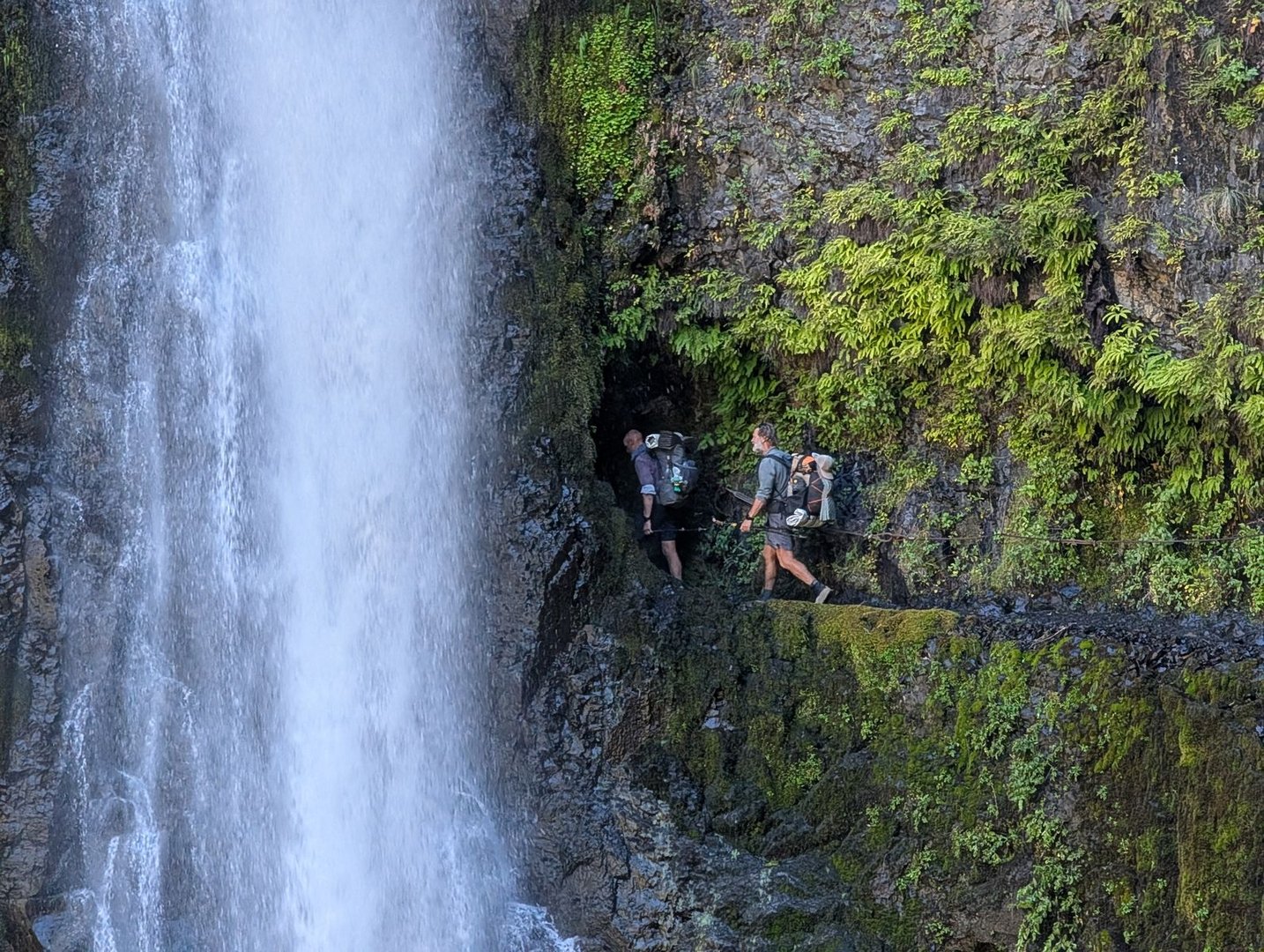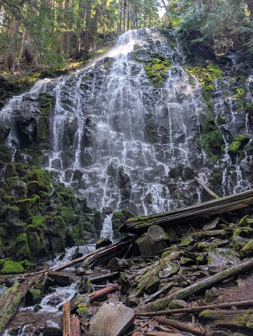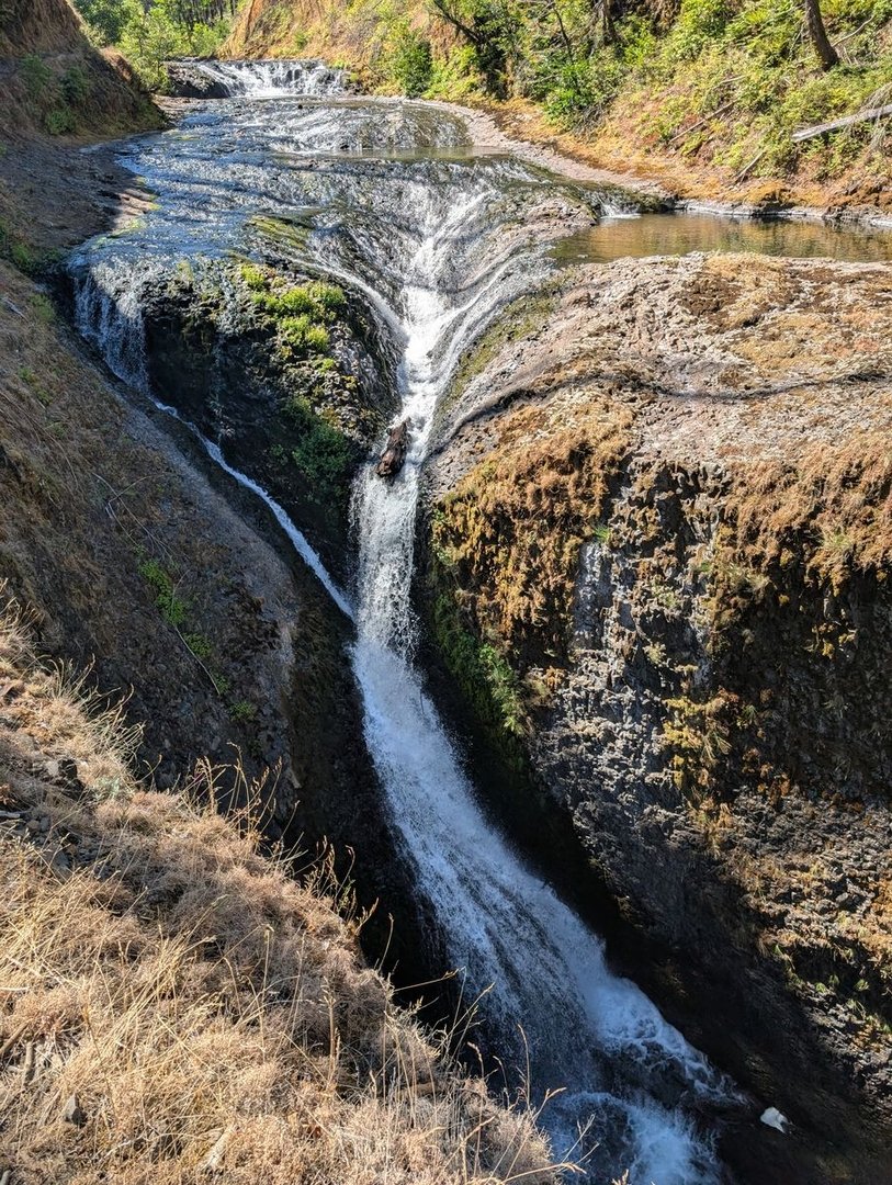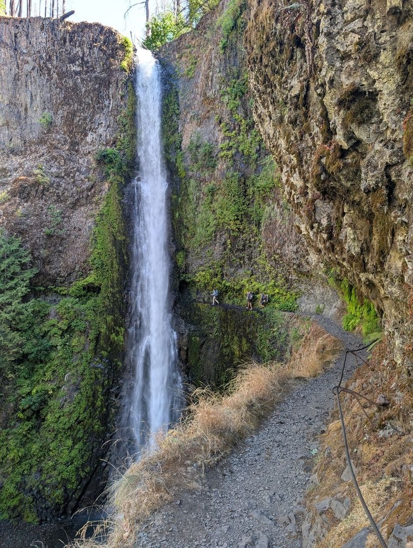 Jetzt nur noch 30 Meilen, und dann ist da die Brücke über den Columbia River, und Oregon schon zu Ende! - Vorher aber noch den Eagle Creek entlang, und weil es von ca. 1100 m über NN auf nahezu Meereshöhe geht, gibt es Anlass zu vielen Wasserfällen.