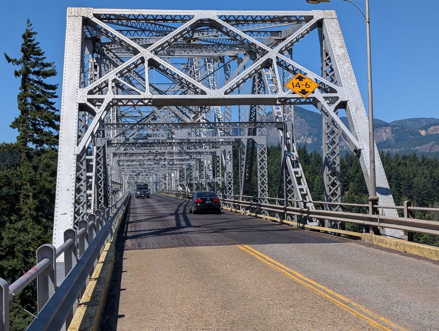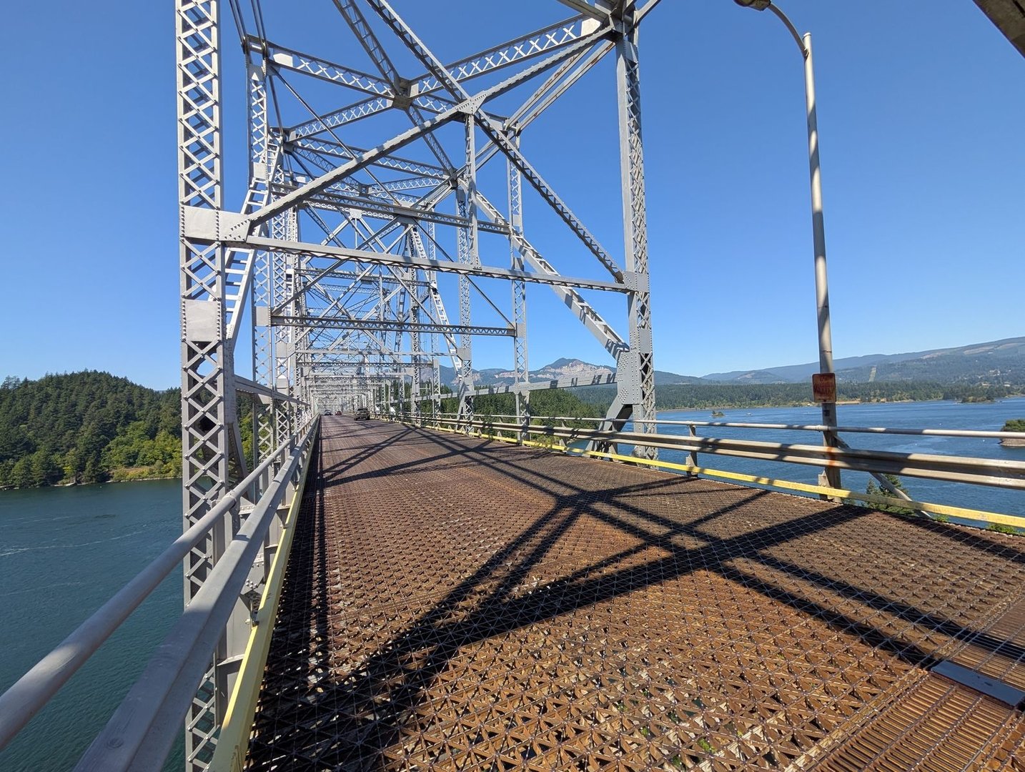 Die Bridge of the Gods überquert den mächtigen Columbia River, und ohne Fußgängerspur komme ich wohlbehalten in Washington an.
