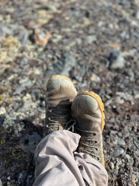 Ein erster Praxistest den Jule mit einer Yoga-Session am Morgen versüßt. Dabei fällt uns eine ältere Frau auf, die mehrmals zwischen Toilette und Trail hin- und herrrennt. Wir lernen sie kurz darauf in der nächsten Schutzhütte kennen, nennen wir sie Inge, und wandern so erstmal zu viert weiter. Sie ist auch Deutsche, wohnt aber seit Jahrzehnten irgendwo bei Luleå. Sie ist Ärztin und hat einen scheinbar unerschöpflichen Vorrat an lustigen Geschichten. Sie ist eigentlich Bikepackerin, aber aufgrund einer Verletzung jetzt zu Fuss unterwegs. Sie mag es nicht, aber "was soll's"? Als wir am Tärnasjö ankommen, muss ich mit Entsetzen feststellen, dass sie gerade dabei sind, die wunderschönen, geschwungenen, hölzernen Hängebrücken durch olle Metallbrücken zu ersetzen. Kein Geld?