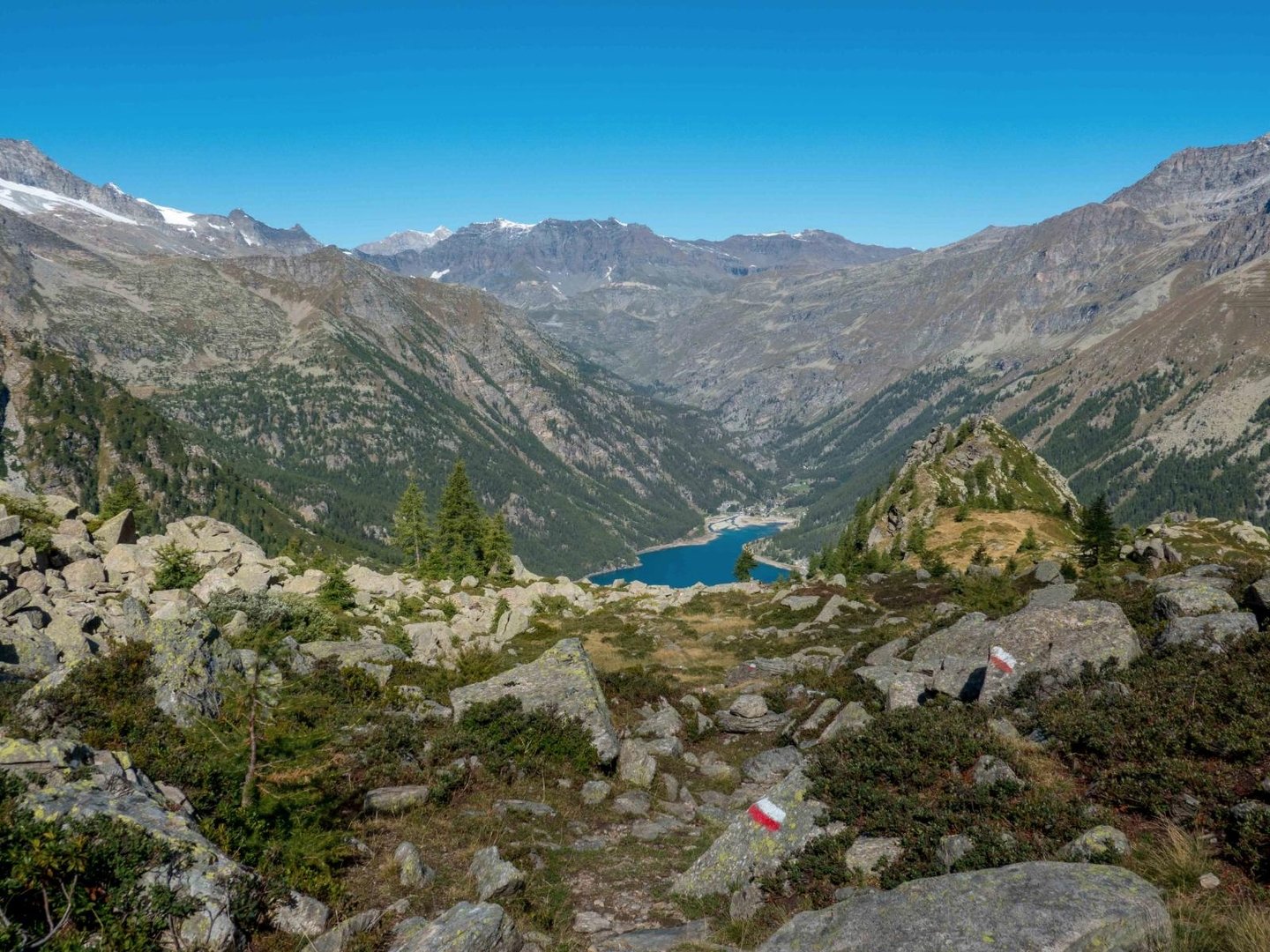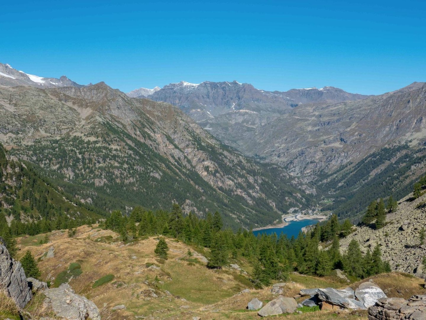 Etwas weiter oben holte ich dann Ch. wieder ein und wir liefen eine Weile gemeinsam. Alsbald offenbare sich ein wunderbarer Blick auf den Lago di Ceresole. Herrlich!