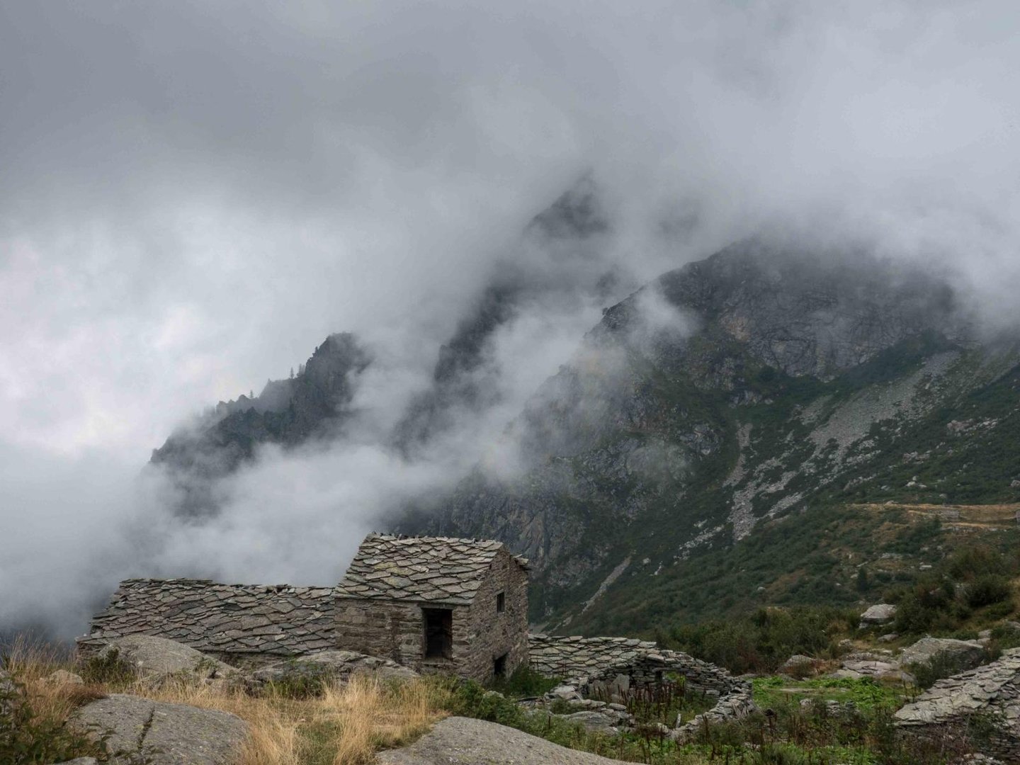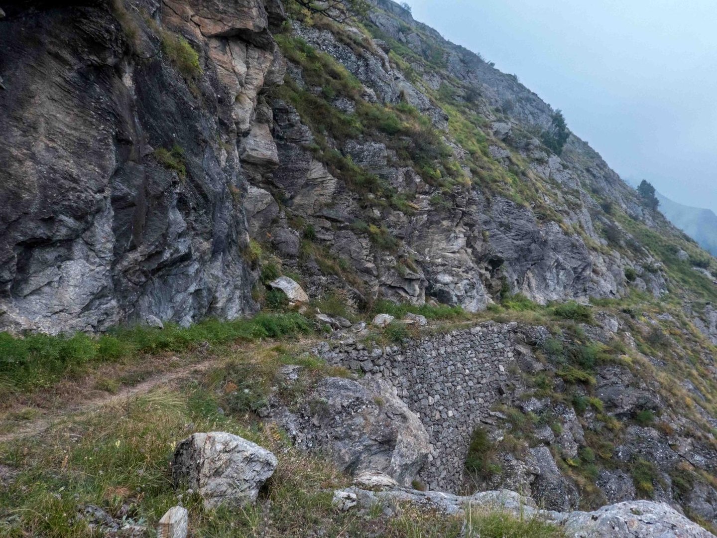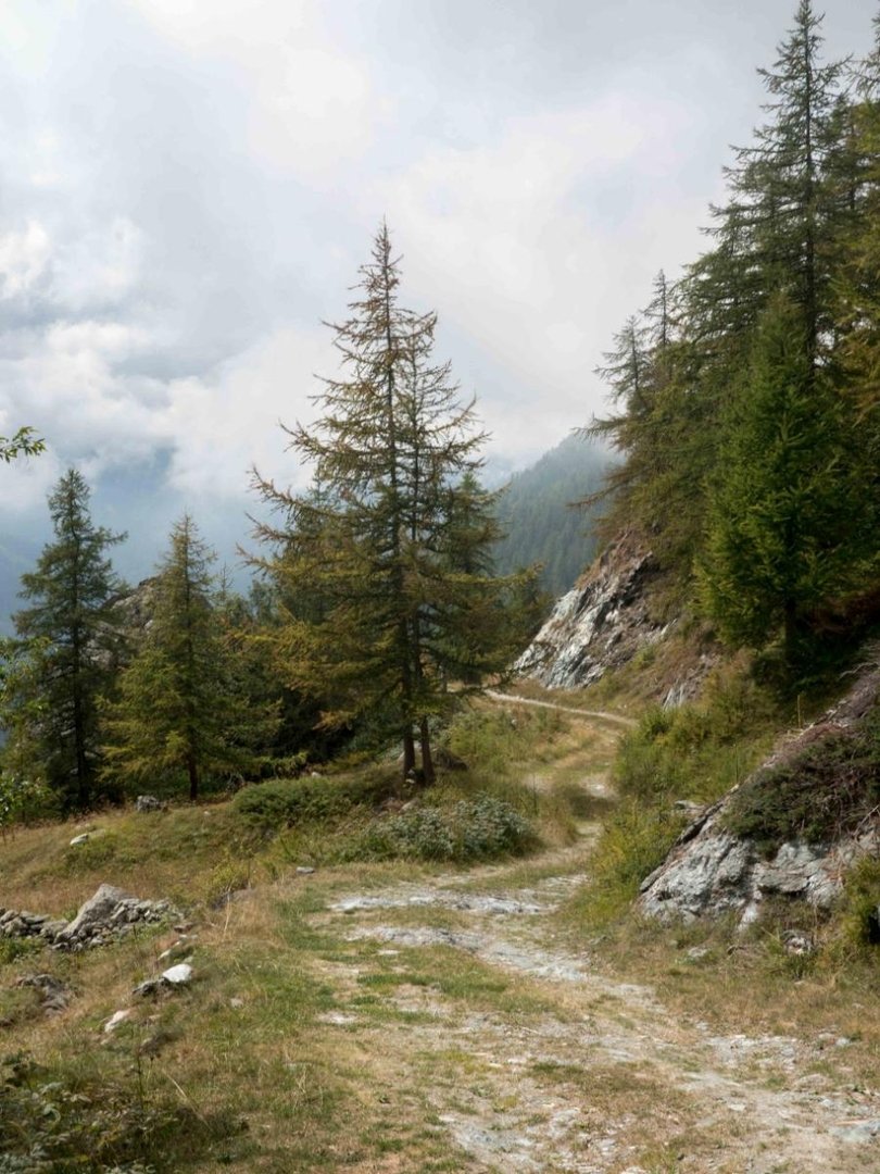 Als wir endlich unten im Tal ankamen und zurückblickten, hatte der Himmel bedrohlich zugezogen. Ein echt imposanter Anblick! Von hier wars nicht mehr weit zum mondänen Albergo Rocciamelone, wo wir ein Gelati und Panache genossen. Eher spät verabschiedete ich mich von Ch., welcher sich hier auf den Heimweg machte und zog weiter. Ich hatte keine Ahnung wohin mich der Weg heute noch führen würde. Eins war aber klar! Ich wollte auf der Decauville zum Rif Vulpot gelangen. Die Decuaville Malciaussia ist eine verlassene Bahnstrecke. Mit der Bahn wurden um 1932 rum Baumaterial zur Baustelle des Malciaussia-Staudamms transportiert. Ab und an sind die Gleise noch sichtbar.