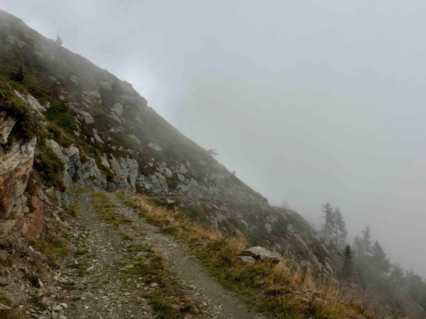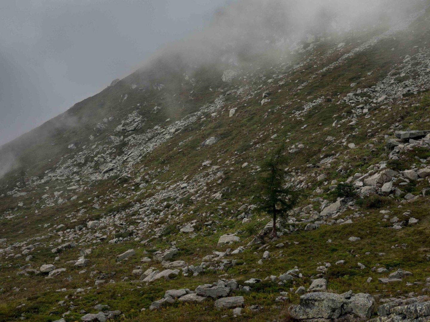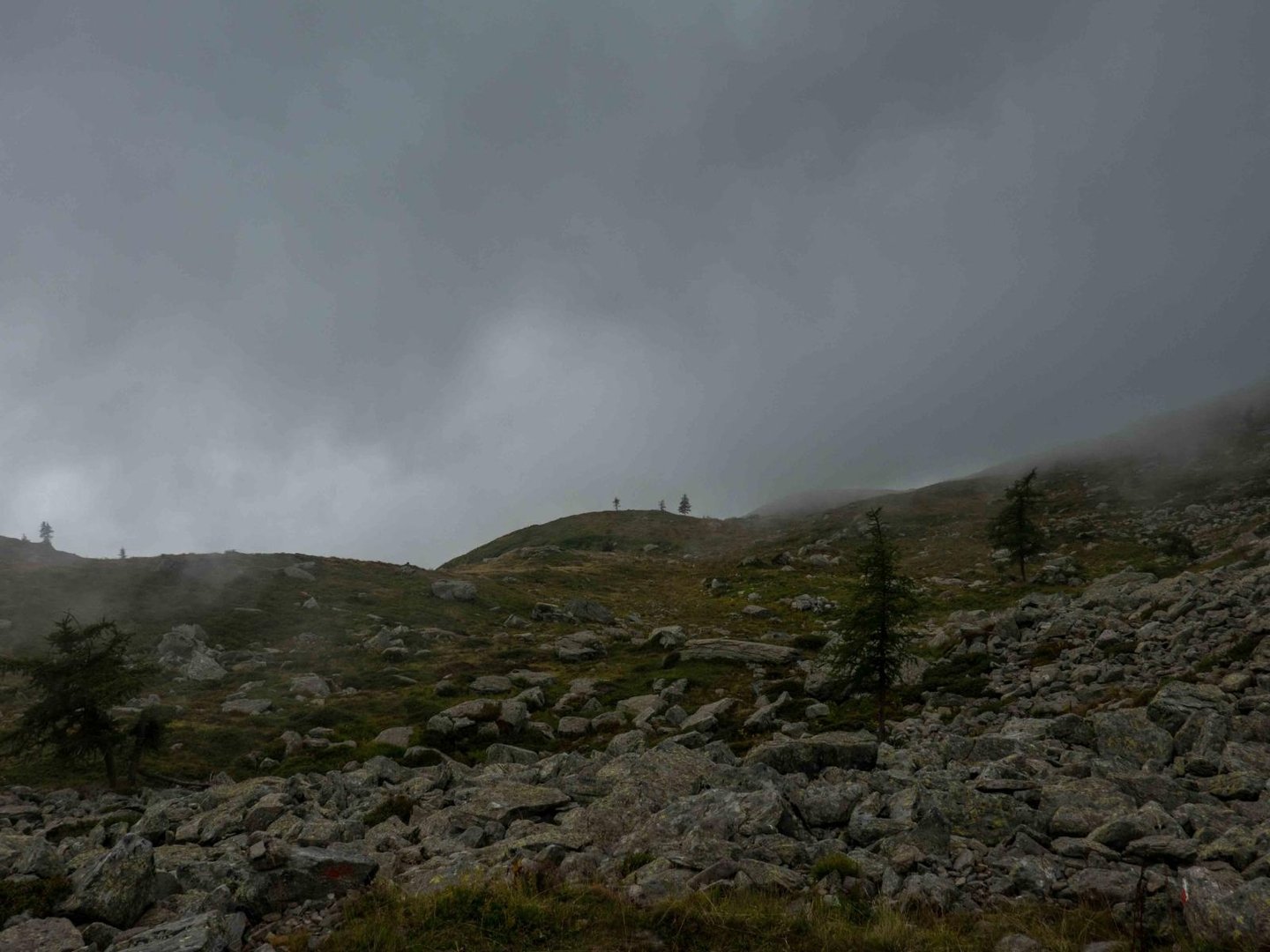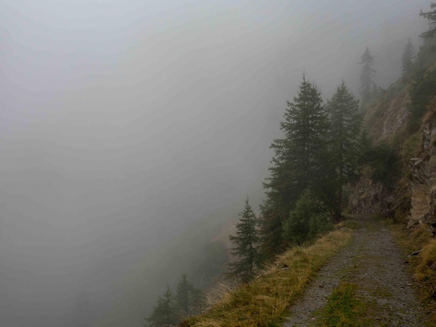 Bereits im AbstiegAuch das Wetter klart am Nachmittag endlich etwas auf und die Sonne zeigt sich. Naja, dafür bot der morgendliche Nebel einige schöne Fotomotive und das Wandern war nicht allzu schweisstreibend.