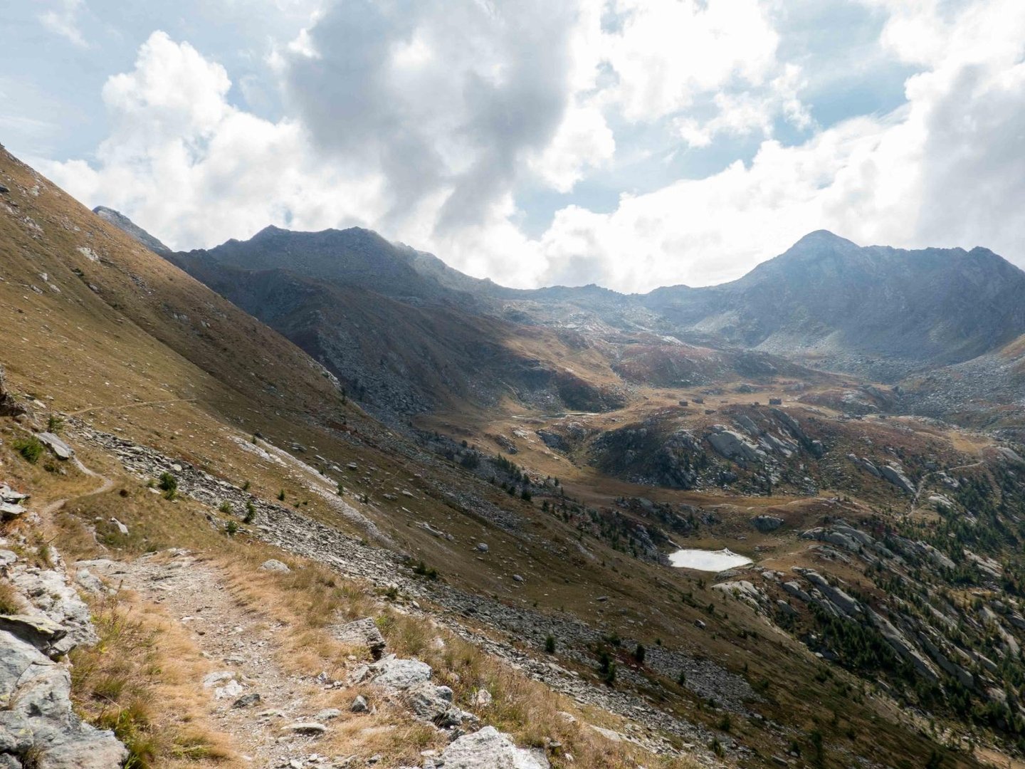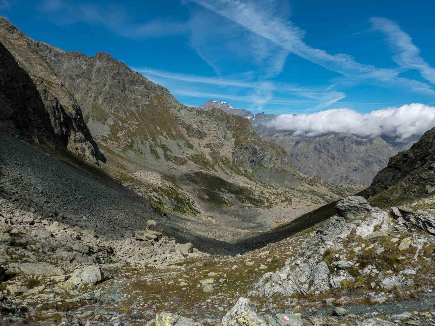 Unterwegs zwischen Rif. Quintino Sella und Passo Gallerino. Der Berg rechts könnte der Viso Mozzo sein, bin mir da aber nicht sicher.