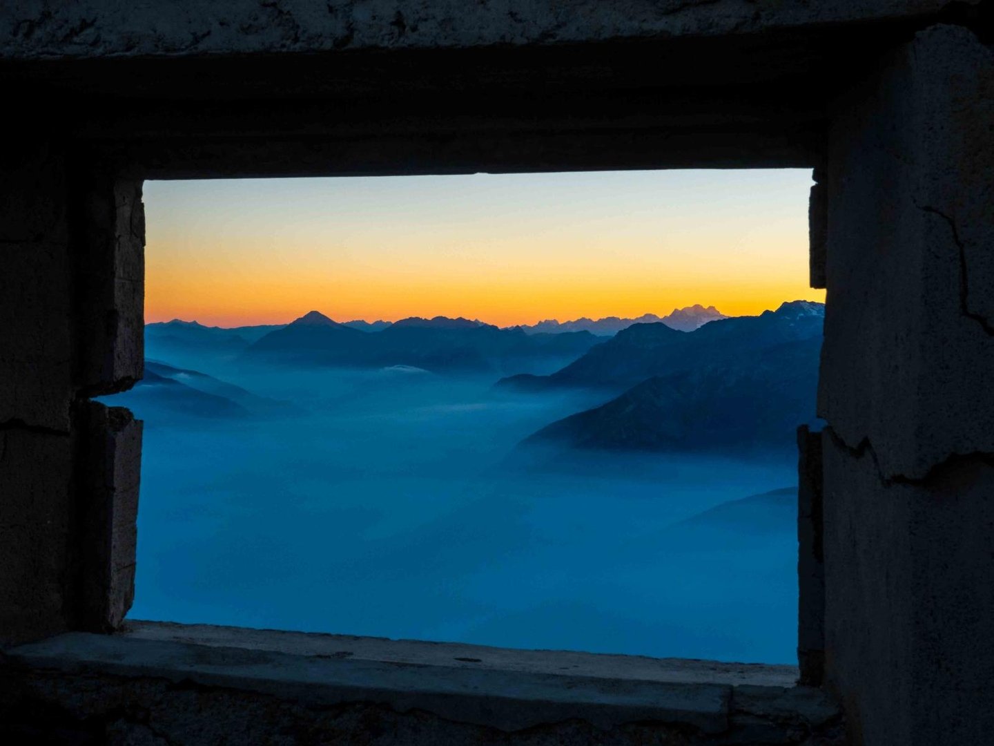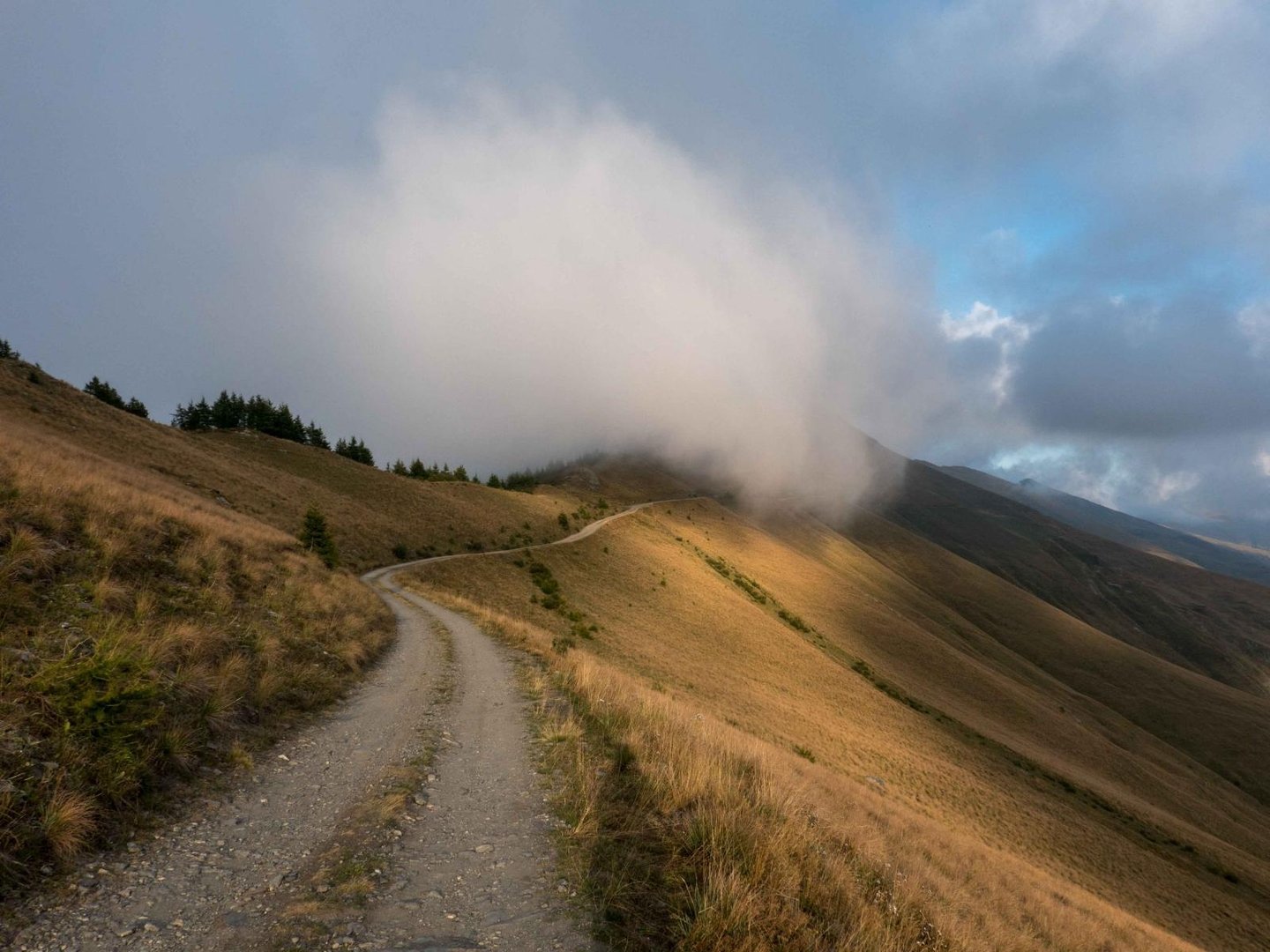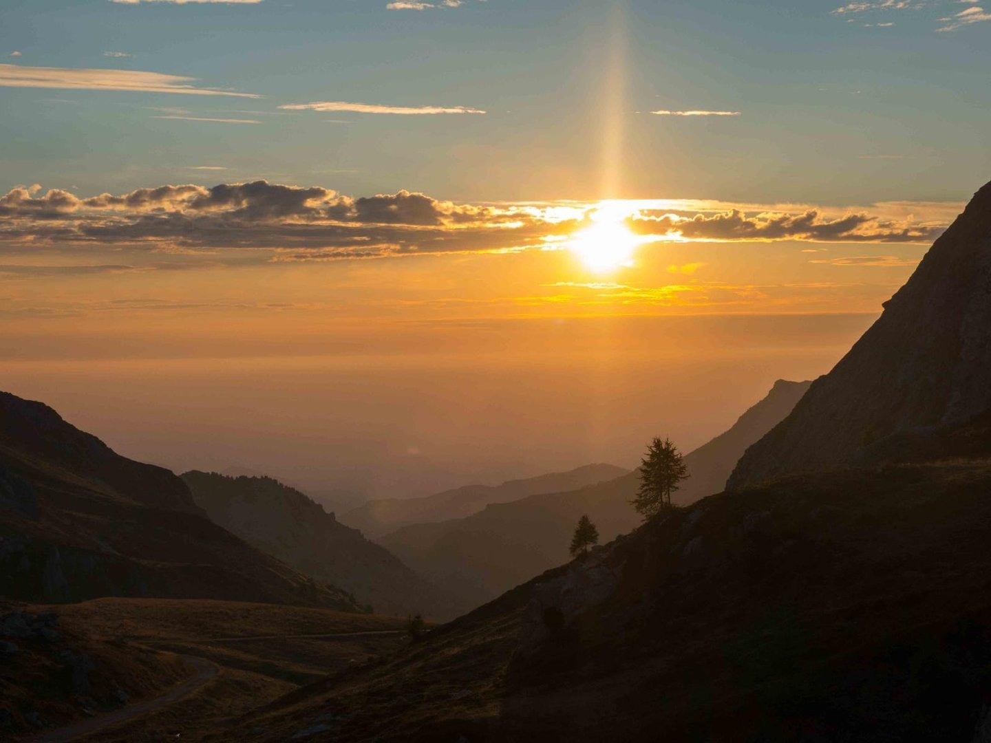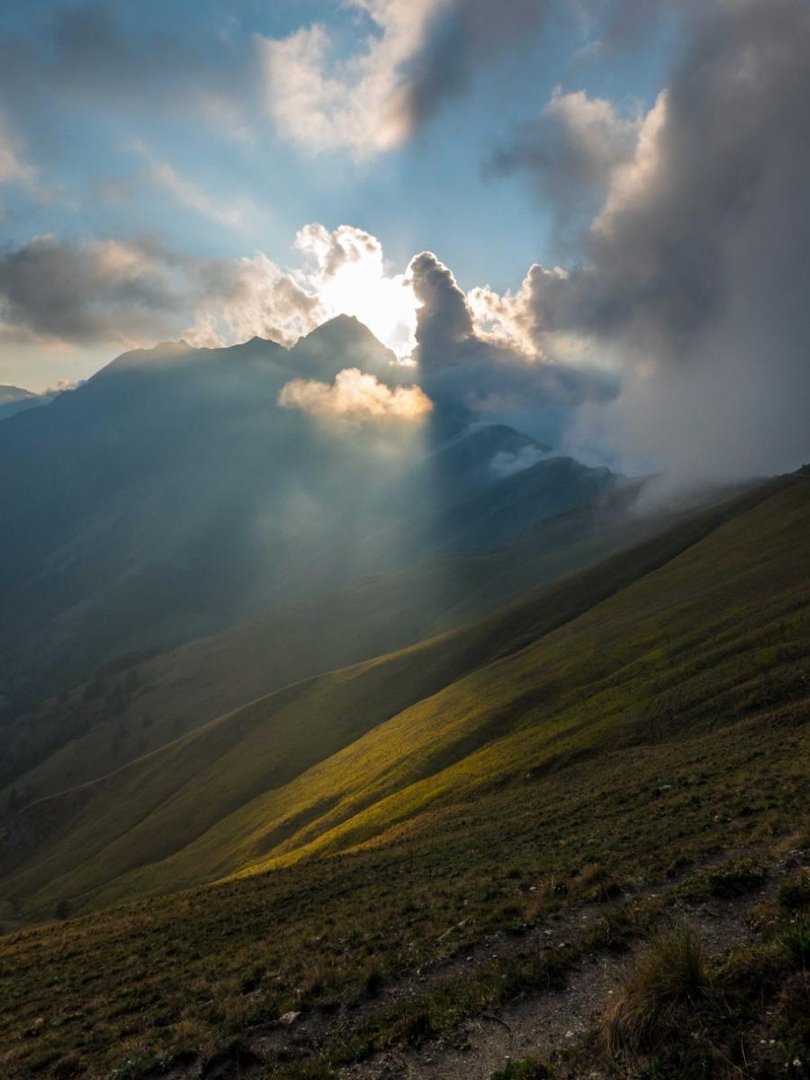 Dort gönnte ich mir nochmals einen Kaffee (Eis war leider aus) und füllte meine Flaschen. Hmm, schon 17 Uhr. Was tun? Ich beschloss weiterzugehen und lief zügig weiter. Ich war dermassen im Fluss und hatte den perfekten Rhythmus gefunden, sodass ich den steilen Anstieg zum Colle Bicocca in Rekordzeit zurücklegte. Oben angekommen war ich überwältigt. Die Sonne und der Nebel zauberten eine wunderschöne Lichtstimmung am Himmel.