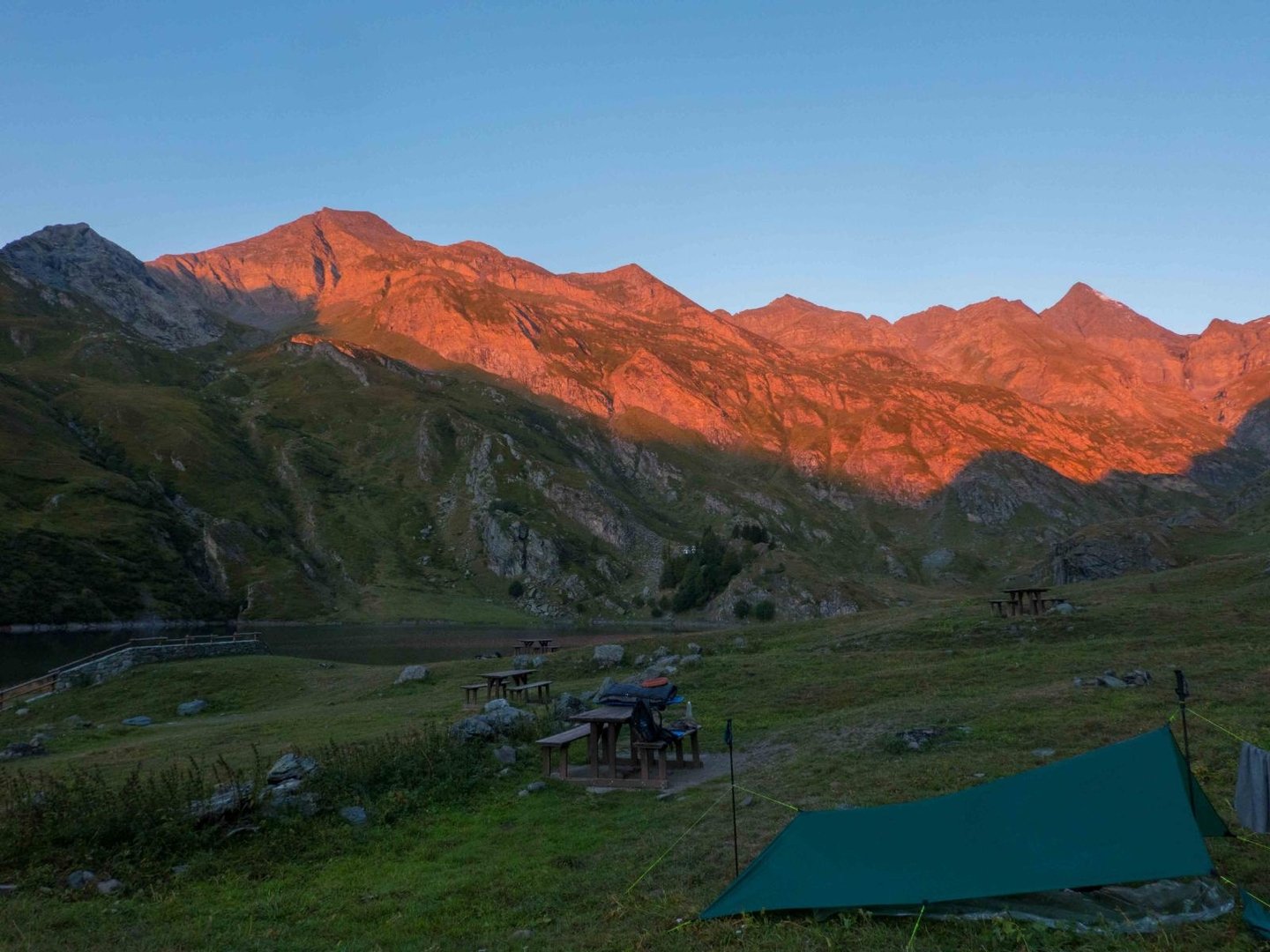 Nach einer extrem angenehmen und guten Nacht stand ich für meine Verhältnisse eher zeitig auf.Nachdem ich den untergehenden Mond und die rotgefärbten Felswände bewundert hatte, startete ich den Tag mit einem Kaffee und kleinen Frühstück. Viel Hunger hatte ich noch nicht. Heute sollte ich den Rocciamelone erreichen und ich war gespannt wie weit ich kommen würde.