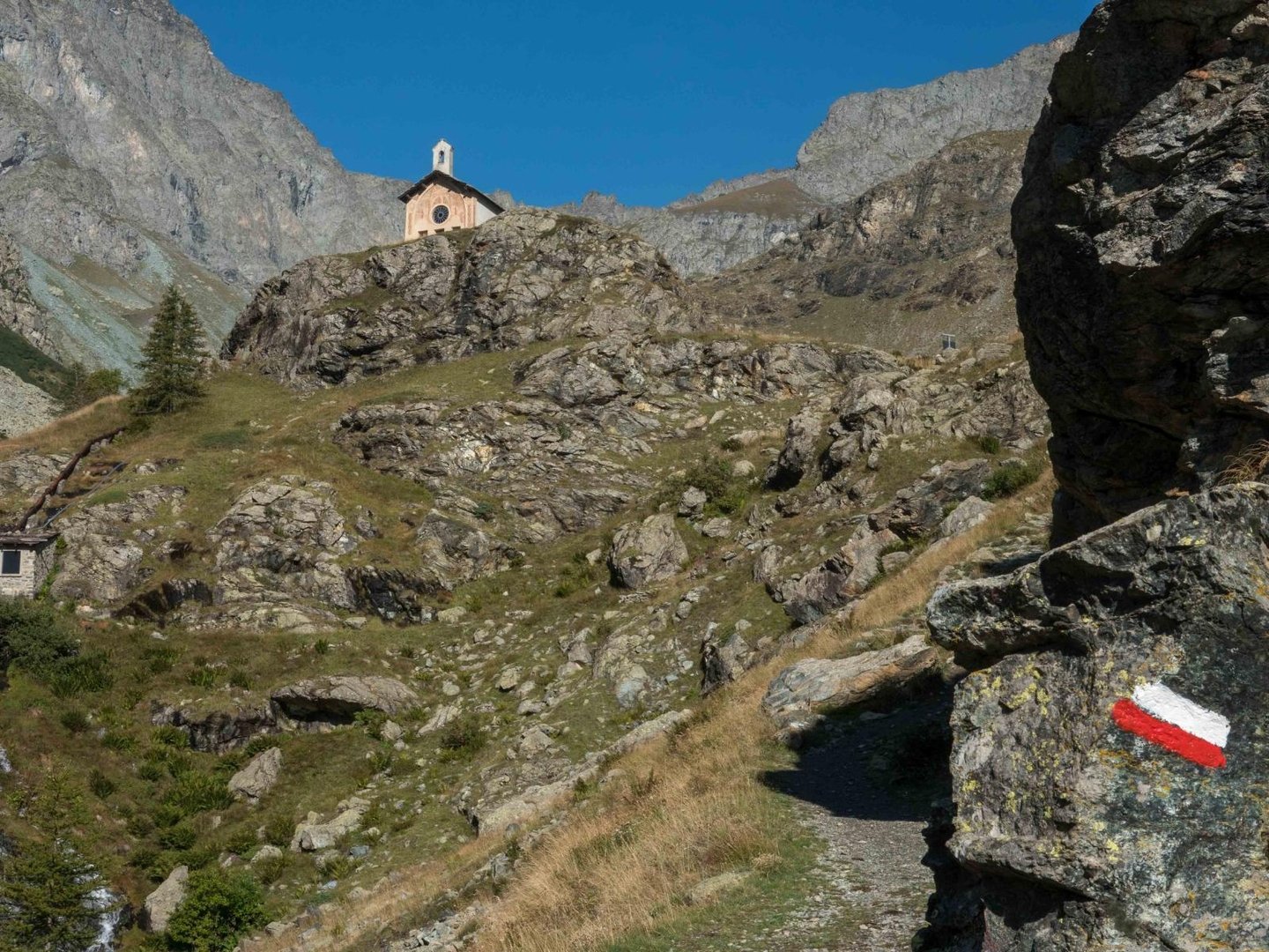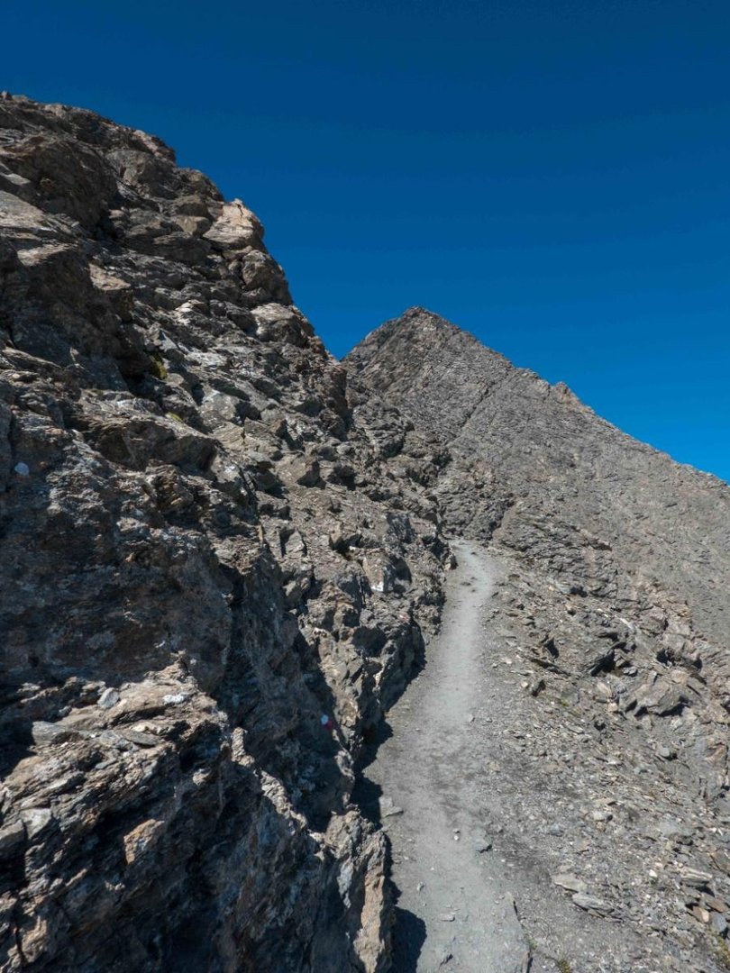 Beinahe hätte ich den etwas unscheinbar wirkenden Abzeiger verpast, welcher etwas direkter zum Rocciamelone resp. dem Riffugio führt. Entgegen der Beschreibung im Rother habe ich diesen auf rund 2440 Meter gefunden. Der anschliesende Weg empfand ich jedoch nicht annähernd so heikel wie beschrieben. Wer auf den bisherigen Etappen der GTA keine Probleme hatte, wird sie hier auch nicht haben. Die Markierungen wurden offenbar neu angelegt, denn entgegen der Beschreibung im Rother war der Weg bestens markiert. An einen oder zwei Stellen gabs etwas Kraxelei, was aber nicht der Rede wert ist. Auch wenn der Gipfel so nah wirkt, zog sich die Passage ziemlich in die Länge.
