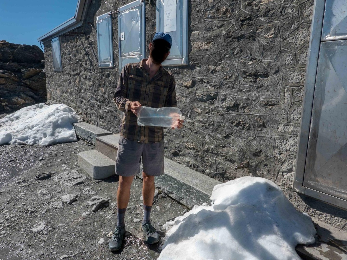 Oben angekommen gabs mal wieder einen Geocache zu suchen. Die naheliegende Aurelio Ravetto war (bedingt durch Covid?) geschlossen. Natürlich liess ich es mir auch hier nicht nehmen den Winterraum zu inspizieren. Im Gästebuch entdeckte ich noch den Eintrag von W. und seiner Hündie Indie, welche die letzte Nacht hier verbrachten.