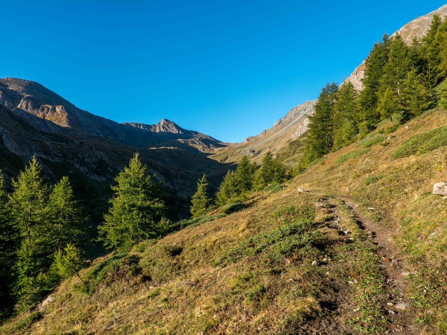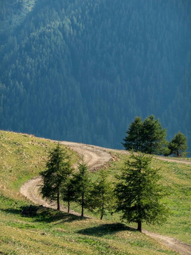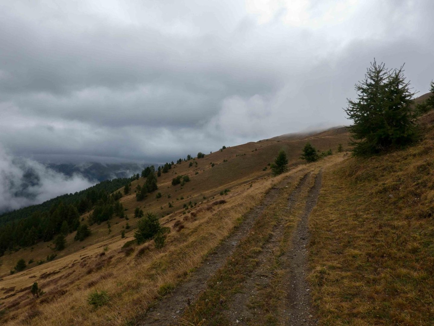 Weiter auf der gemütlichen, immer leicht abfallenden Alpstrasse zur Gias Mure, wo der Weg in einen steilen Pfad mit zahlreichen Kehren übergeht.