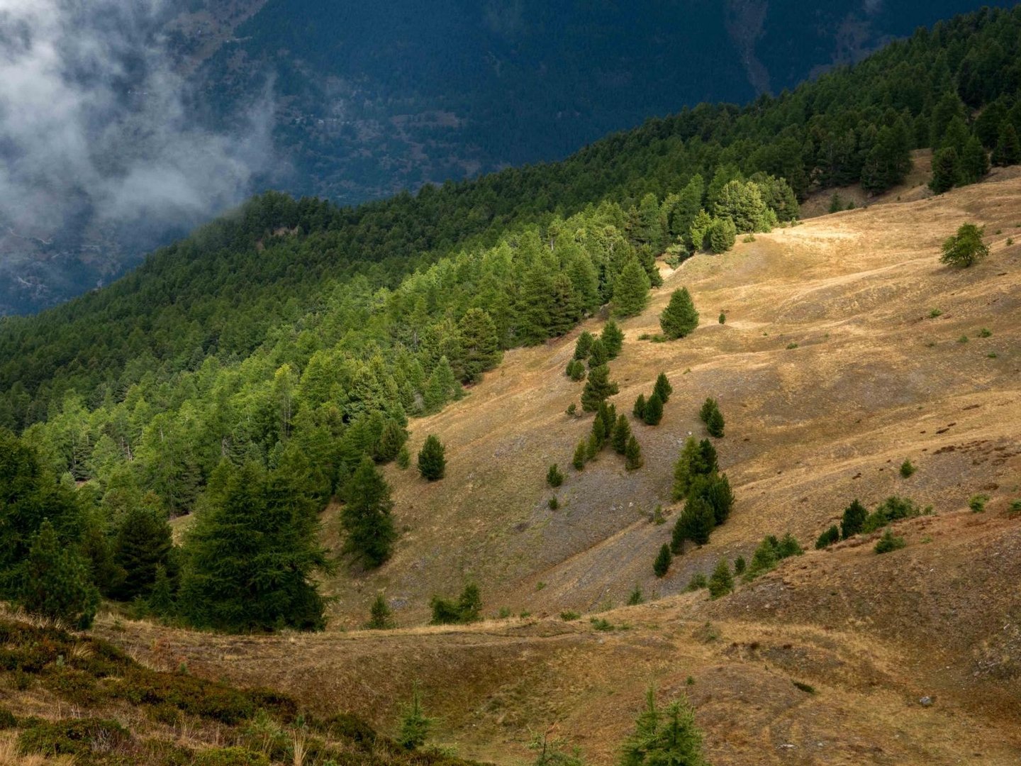 Anfangs wars noch recht windig und kalt. Kunststück auf über 2500 müM. Mit der Sonne wurde es jedoch sukzessive wärmer und milder. Mit durchschreiten der Baumgrenze nahm schlagartig auch der Wind ab.