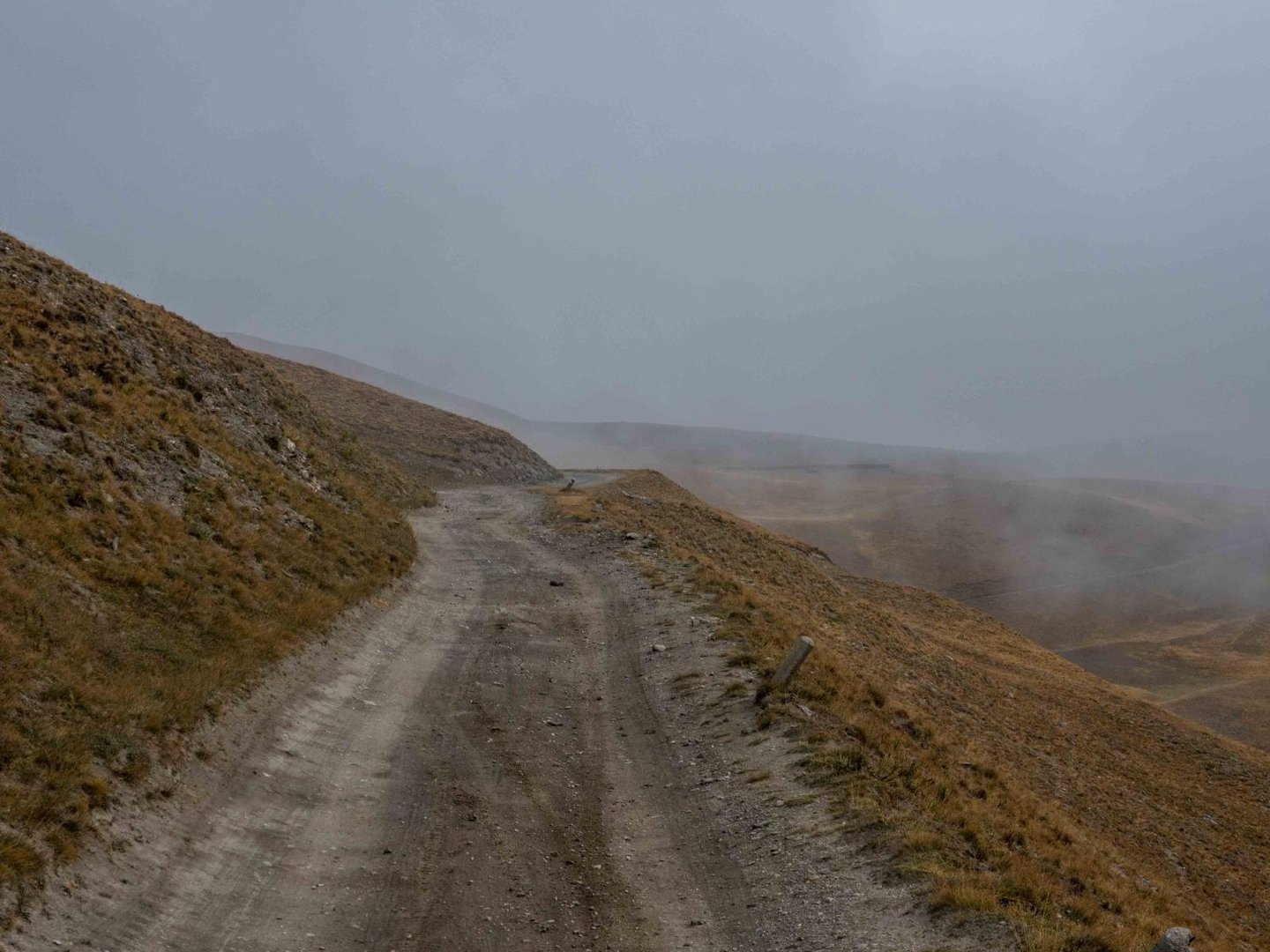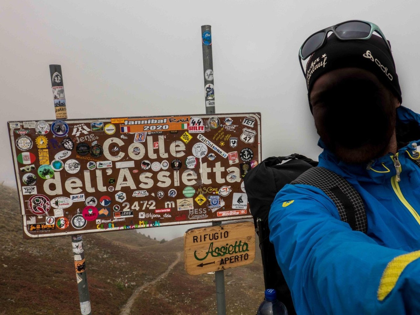 Erstmal Regenjacke angezogen um mich vor dem Wind zu schützen. Kaum hinter dem Passo Gallarino öffnete der Himmel die Schleusen und ich zog noch schnell die Regenhose über. Wenig später gesellte sich noch Hagel zum Regen und ich zog den Kopf wie eine Schildkröte ein. Ich legte einen Zahn zu, passierte den Passo San Chiaffredo, wo ich kurz das obligate Foto schoss und keine 15 Minuten später war der Spuk vorbei.