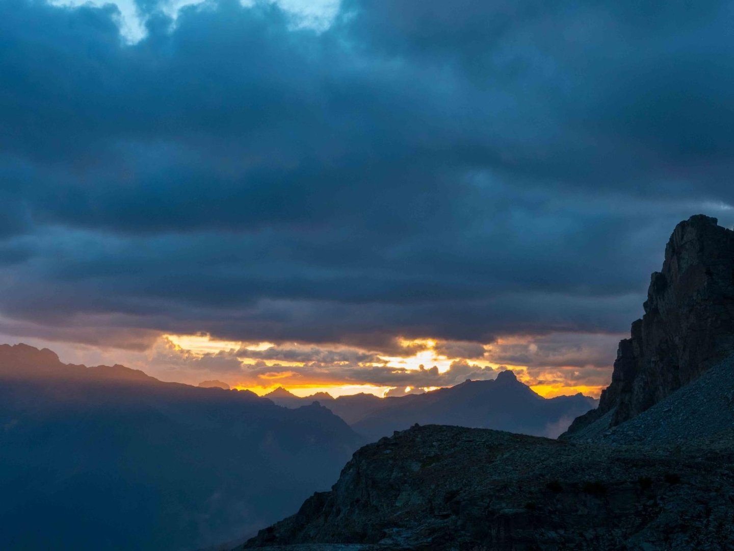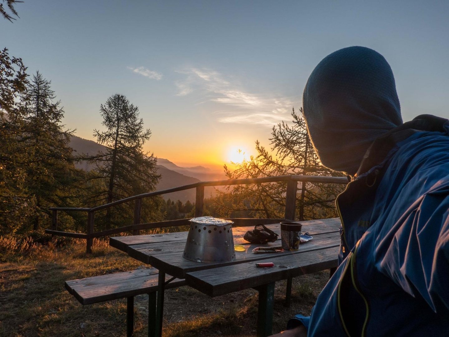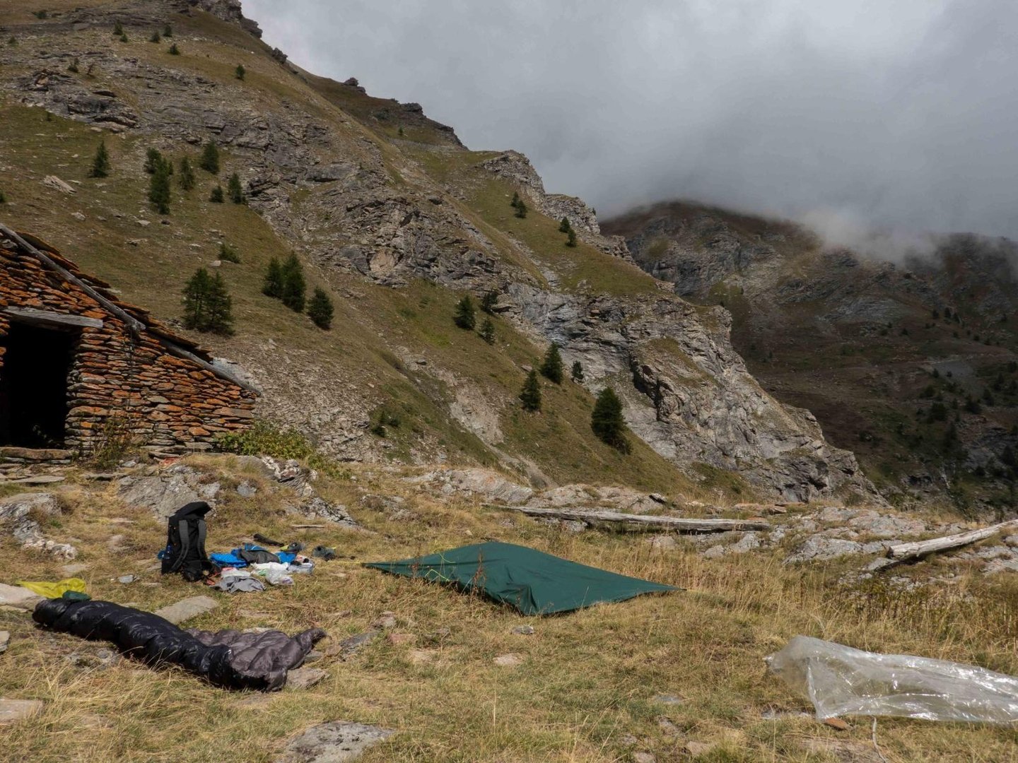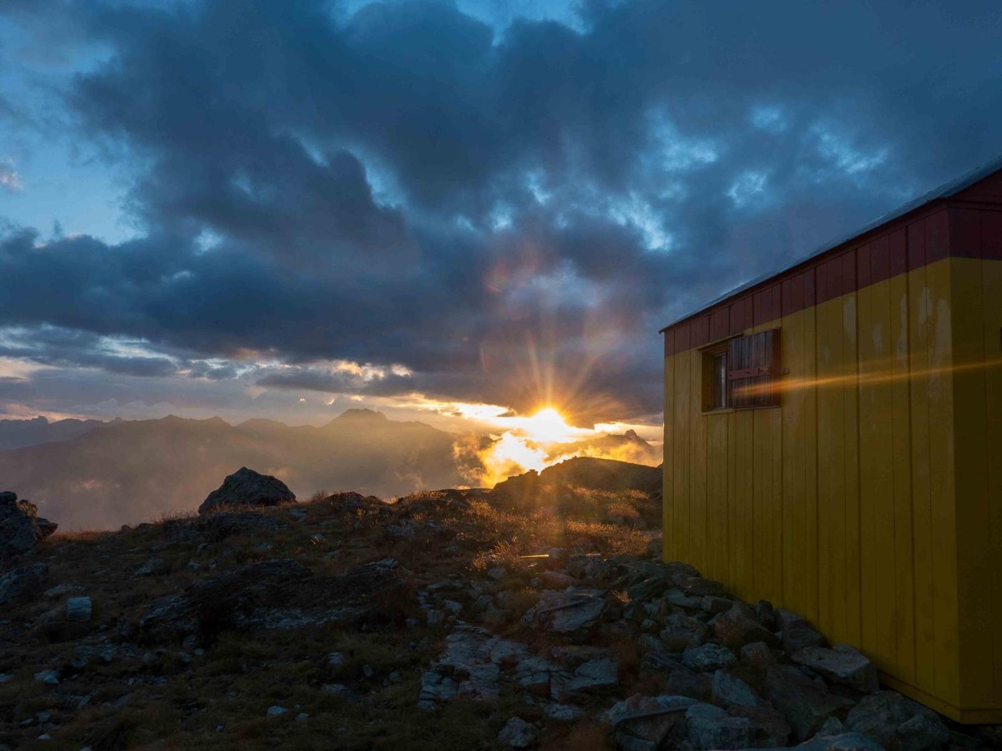 Kurzerhand frage ich im nigelnagelneuen Bivacco Fauniera für einen Nachtplatz an. Die schöne Hütte ist praktisch leer und dementsprechend stehe ich bald unter der neuen Dusche. Zusammen mit einem grossartigen Abendessen geniesse ich den Sonnenuntergang. Morgen wird der letzte Tag auf der GTA für dieses Jahr