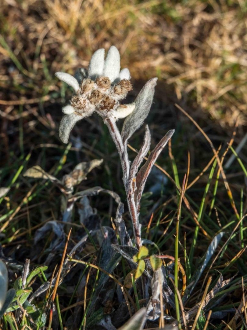 Jedenfalls erblickte ich auf dem Weg zum Pass mit den zahlreichen Namen nochmals einige Edelweiss. Was für eine Freude! Ich schlenderte auf der Passstrasse in Richtung Colle Valcavera und auf gemütlichen Alpstrassen in Richtung Rifugio don Franco. Zeit für eine kleine Pause an der Sonne will ich doch nicht zu früh in Sambuco sein.