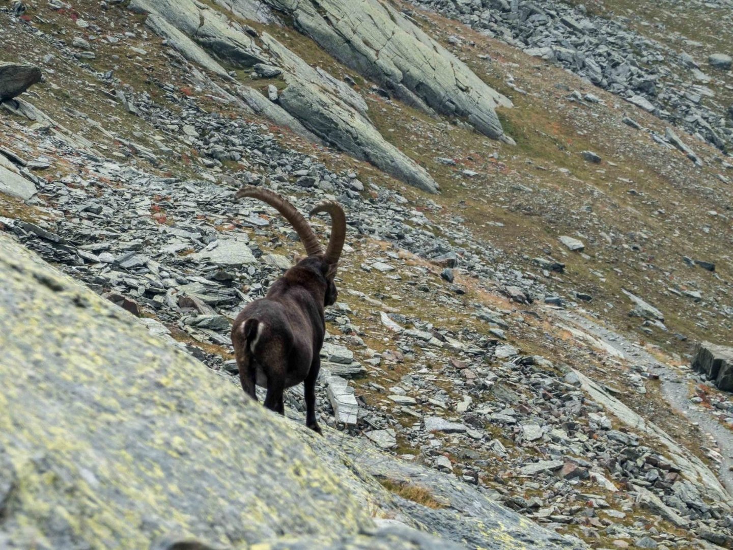 Eieiei der Abstieg hierhin hats echt in sich und bei Regen wäre das eine spannende Sache. Auch der weitere Weg war ziemlich steil. Unterwegs erblickten wir übrigens noch diesen prächtigen Steinbock, welcher hoch über Usseglio thronte. Was für ein erhabener Anblick