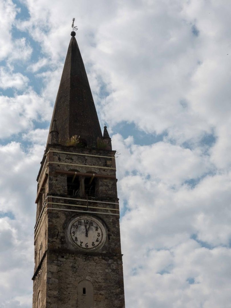 Bei Crest begegnet mir eine Herde Hühner und andere lustige Tiere (Gänse?, keine Ahnung). Ich mag die Tiere und schaue ihnen eine Weile zu. Sie vermögen sich an meiner Gesellschaft jedoch nicht so recht zu erfreuen und scheinen etwas nervös. So lasse ich die Tiere wieder in Ruhe und erblicke wenig später die wunderschöne Kapelle Madonna della Visitazione. Natürlich lasse ich es mir nicht nehmen die Kapelle etwas später auch aus der Nähe anzusehen. Leider ist aber auch diese Kapelle (wie die allermeisten verschlossen). Die anwesenden Kühe waren im Gegensatz zu den Hühnern vorher sehr an mir und meinem Tun interessiert. Was für schöne Tiere.