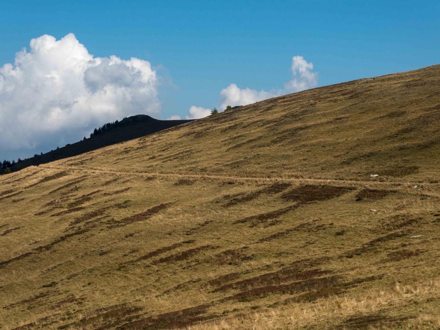 Der weitere Weg via der Bassa di Narbona zum Passo delle Crossette gefiel mir dann deutlich besser. Zwar auch nur eine Alpstrasse, bot aber deutlich mehr Abwechslung. Zu meiner Überraschung sömmerten hier immer noch einige Schafe, Lämmer, Esel und ein Shetlandpony. Wirklich schön hier und ich kam wieder ins Träumen.