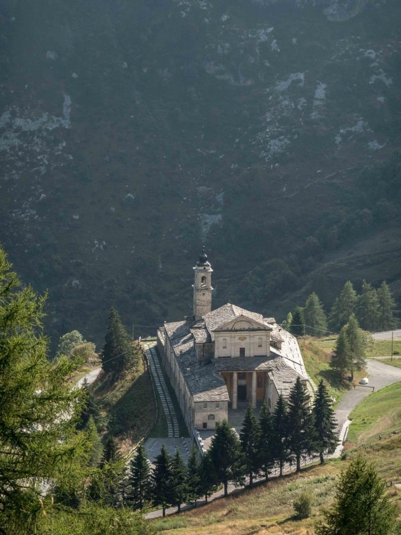 Weiter gehts dem schönen Santuario San Magno entgegen. Die Strasse versprüht wenig Reiz, trotzdem gönnte ich mir den Abstecher zum schönen Gebäude. Eine Nacht in diesem Historischen Gebäude wäre sicher ein Erlebnis. Da aber alles geschlossen war schaute ich mich etwas um, mache Fotos, füllte Wasser und lief dem Colle dei Fauniera (im Rother noch als Colle dei Morti vermerkt) entgegen. Leider führt der Weg auch hier auf der Strasse, was dank dem schwachen Verkehrsaufkommen erträglich war.