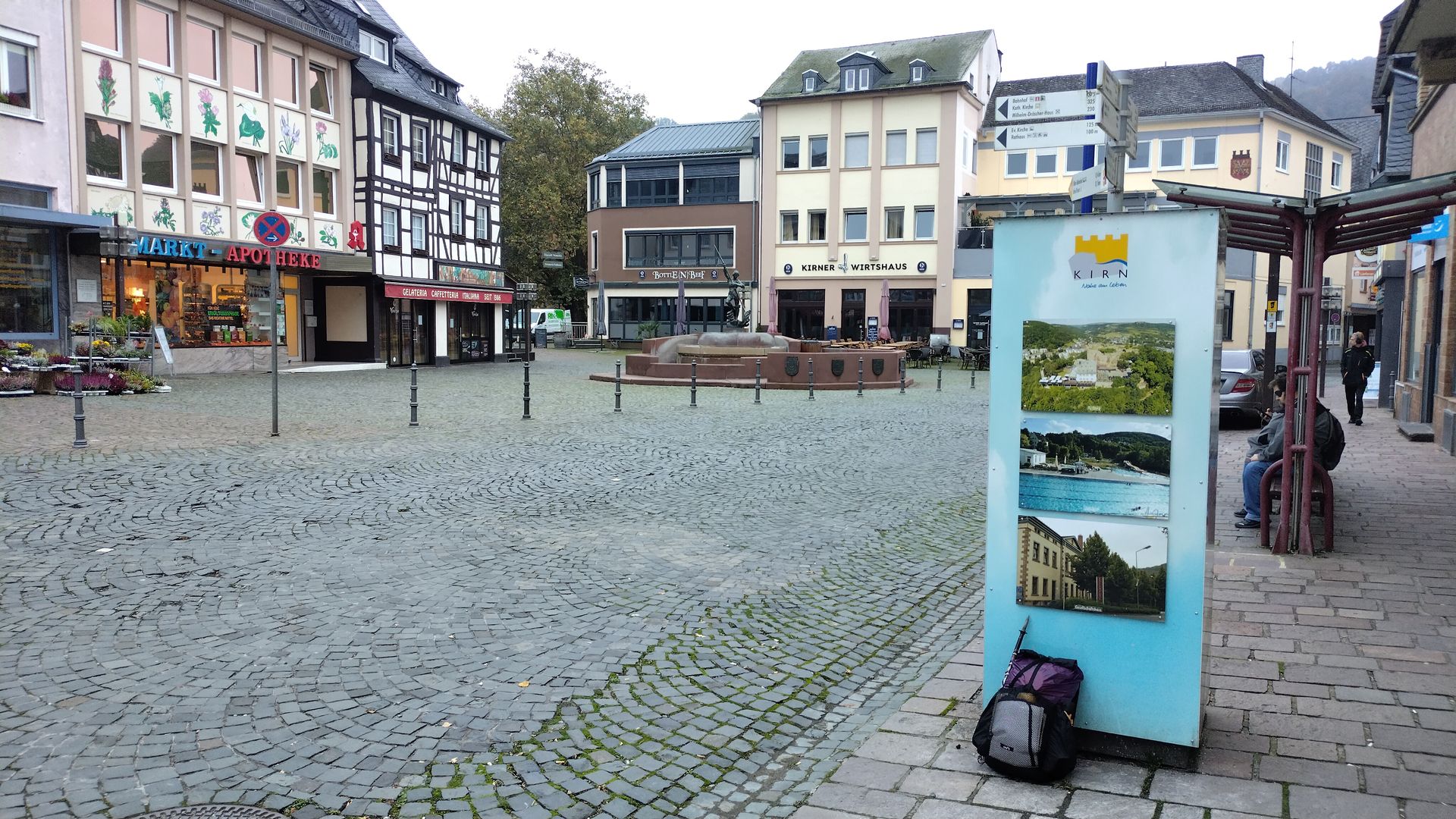 Gut eine Stunde später stehe ich gegen 10 Uhr bereits in Kirn am Bahnhof. Als ich den Zug verlasse ist es grau und der erste Gedanke: Mist, es ist sau kalt und ich hab zu wenig Kleidung dabei! Schnell die Windjacke drüber und das Buff um den Hals und zum Startpunkt auf dem Marktplatz.
