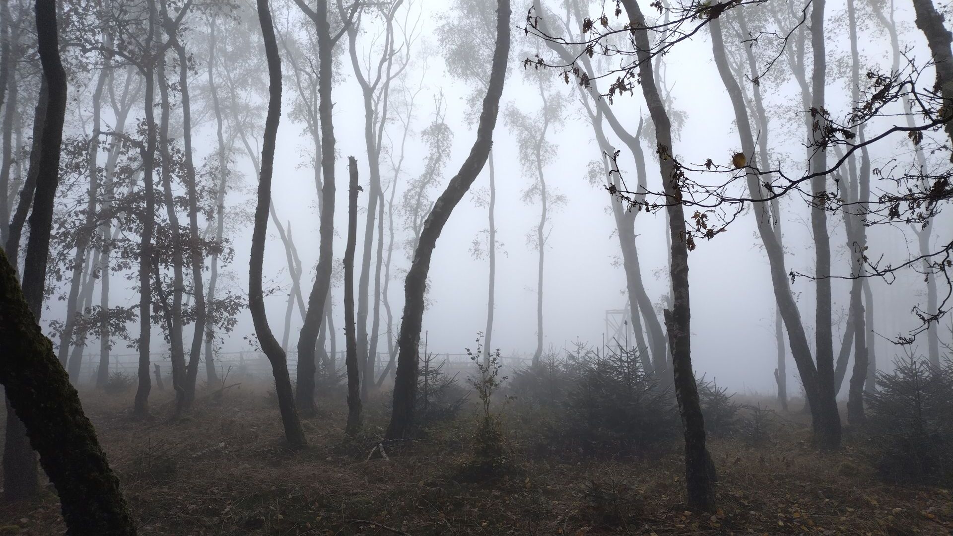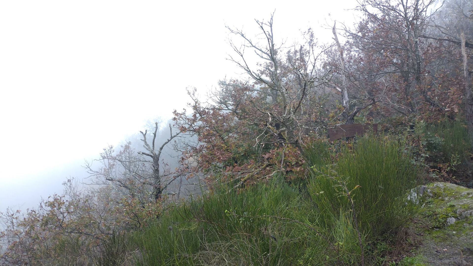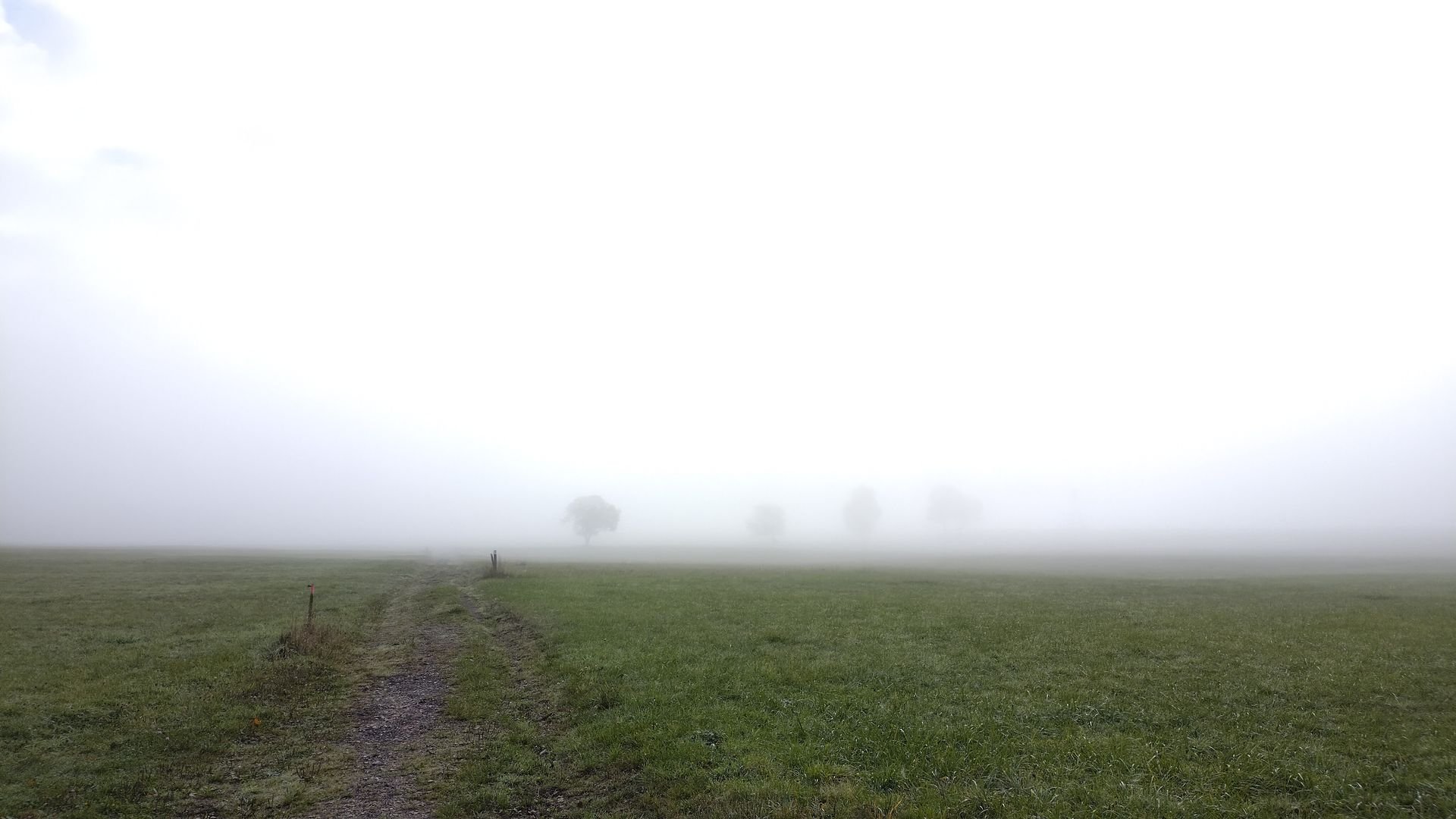 Als ich die Hütte gegen 16 Uhr verlasse wirkt es bereits als dämmert es schon. Alles ist im düsteren Grau versunken. Aussichten gibt es entsprechend von diesem Teil keine, aber die Stimmung ist dennoch schön. Ich denke an irgendeine Mischung aus der Landlust Herbstausgabe und einem Horrorfilm ![]()
