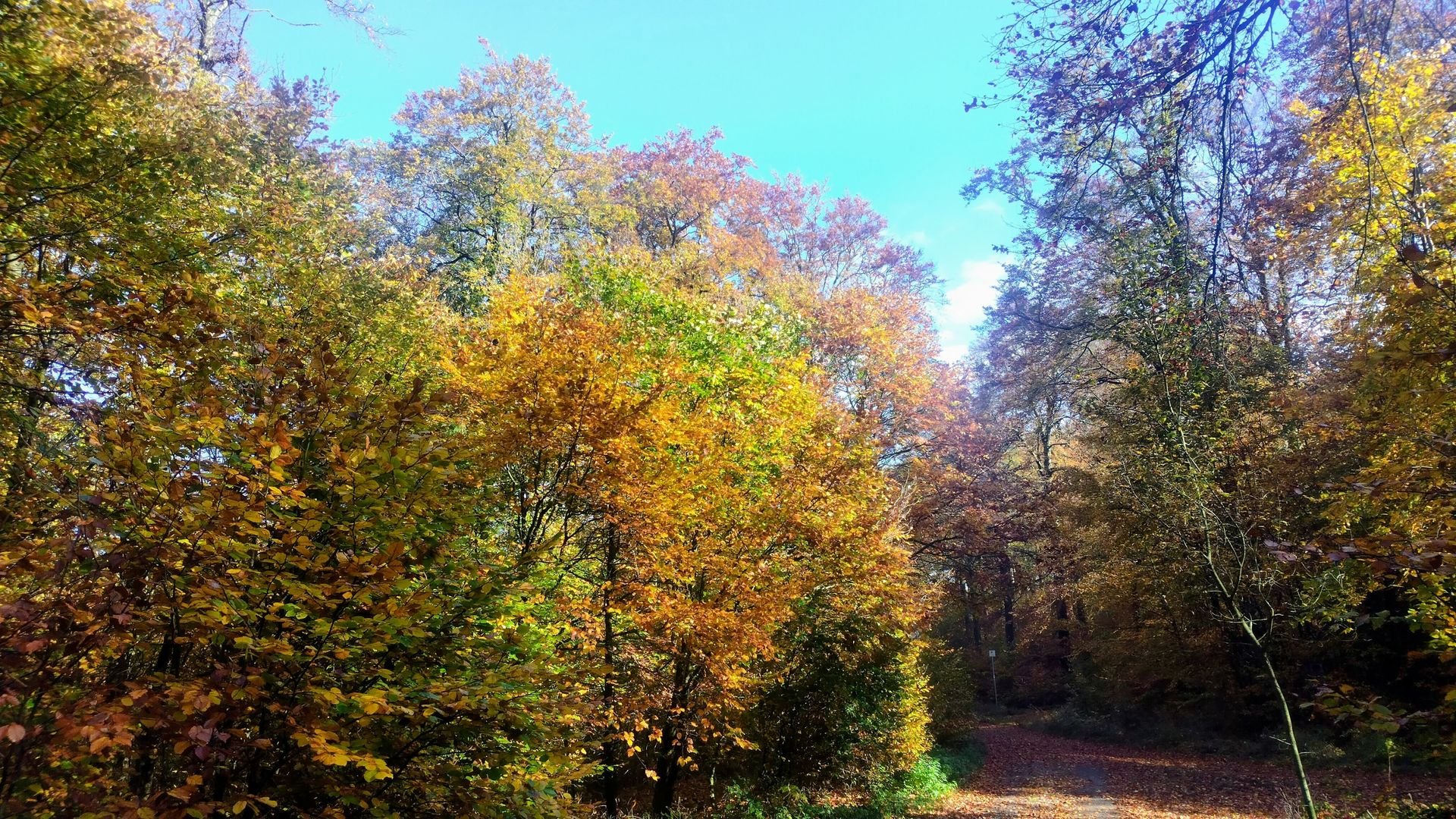 Das Wetter an diesem Tag ist ziemlich perfekt: goldener Herbst! Die Sonne scheint ab Mittags und das Herbstlaub leuchtet. Die Kilometer flossen dahin und ich kam gut gelaunt voran. Ein paar Abschnitte sind über Waldautobahn, was mich aber gerade wenig stört