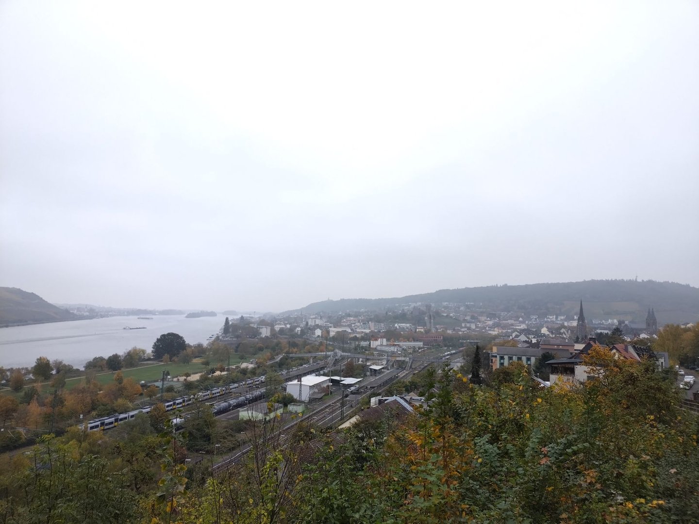 Die Nacht ist frisch, aber ich schlafe relativ gut. Nur ein Selbstbedienungsautomat mit offenbar überdimensionierter LED-Beleuchtung strahlt die neblige Nacht sehr hell. Morgens geht's einfach nochmal rein an die kleine Tee/ Kaffeestation und ich mache mir meinen Kaffee mit dem Wasserkocher. Leider ist heute der Magen irgendwie flau, so dass die letzten 20km nach Bingen nicht mehr viele Fotos entstehen, aber sei's drum.