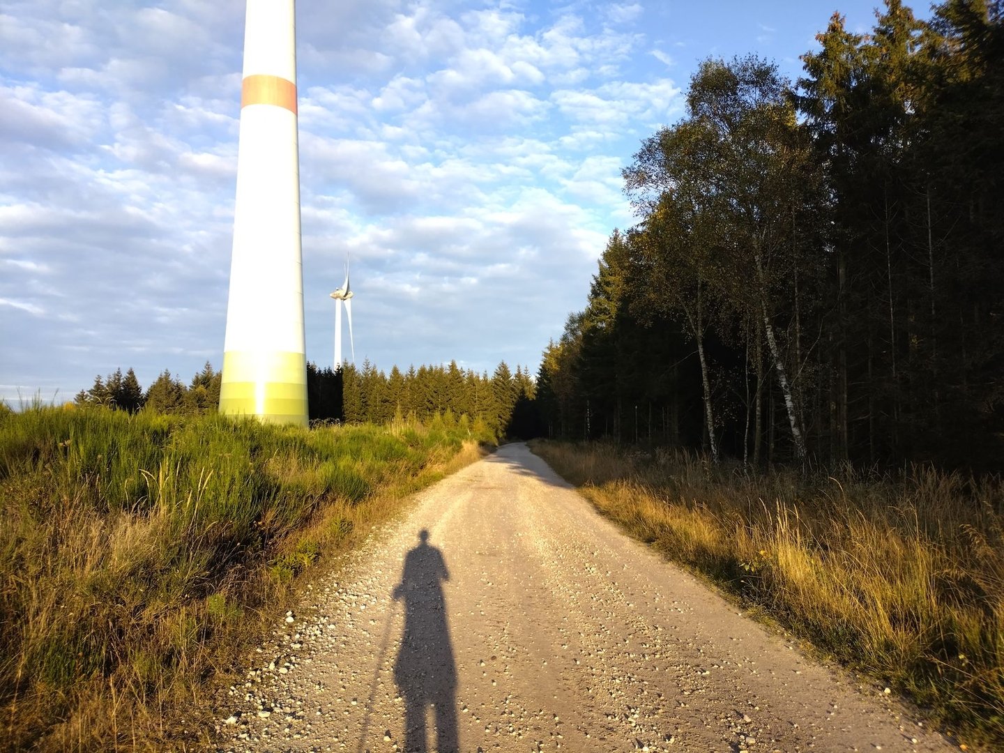 Also geht es in der scheinbar ewig untergehenden Sonne weiter in Richtung Lauschhütte, durch dir Windräder und schönen Wald.