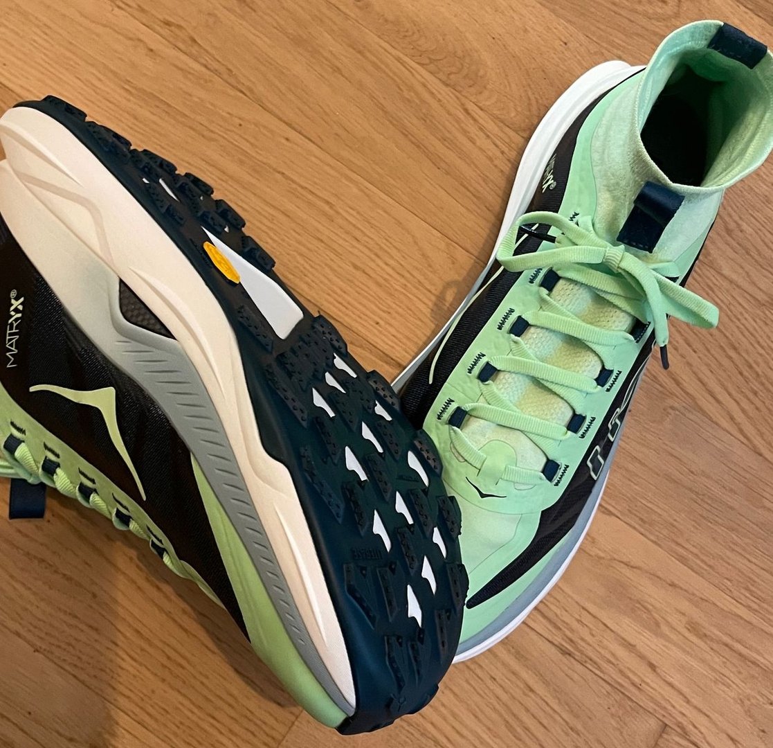 Wohlan, vor ein paar Wochen habe ich mir welche bestellt und sie in meinem geliebten westschweizer Jura ausprobiert. In der Zwischenzeit hatte ich Hoka Speedgoat verwendet. Nach 400 km sind die jedoch reif für die Tonne. Die schönste Gummimischung nützt wenig, wenn die Stollen aufgrund ihres Designs schmelzen wie Käse auf der Pizza.