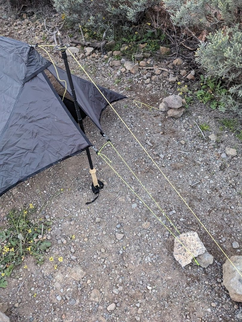 • Wer übrigens darauf spekuliert bei Gewitter mit Carbon als Zeltstock besser weg zu kommen sei enttäuscht, Kohlenstofffaser ist ein guter elektrischer Leiter