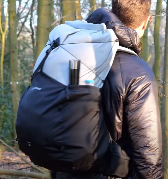 Für mich sieht das auf den Fotos ein bisschen danach aus als dass die Seitentaschen zusätzlich noch "nach vorne" geöffnet wären. Das würde die Erreichbarkeit für kleinere Flaschen deutlich einfacher machen. Hab das auch bei dem kleinen 17L Rucki aus der alten Fast Hiking Serie so und funktioniert super.