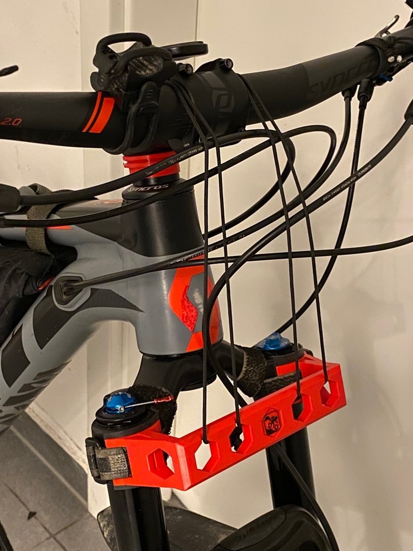 - Abstandshalter am Rad: „Bumper“, selbst entworfen, 3D-Druck + Dyneema-Kordel (zusammen ~ 60 g)