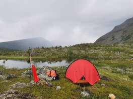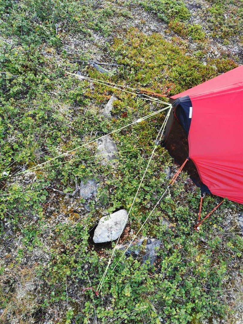 Ich hatte das Notch Li ungefähr 200 Nächte lang im Einsatz. Von meinen bisherigen Tarptents war es sicher das unkomplizierteste, allerdings sind auch dort die Enden wirklich schwer vernünftig aufzubauen. Jedoch: Da mehrere Zeltschnüre zu einem Stake zusammenlaufen, ist es natürlich mit Steinen kein Problem.