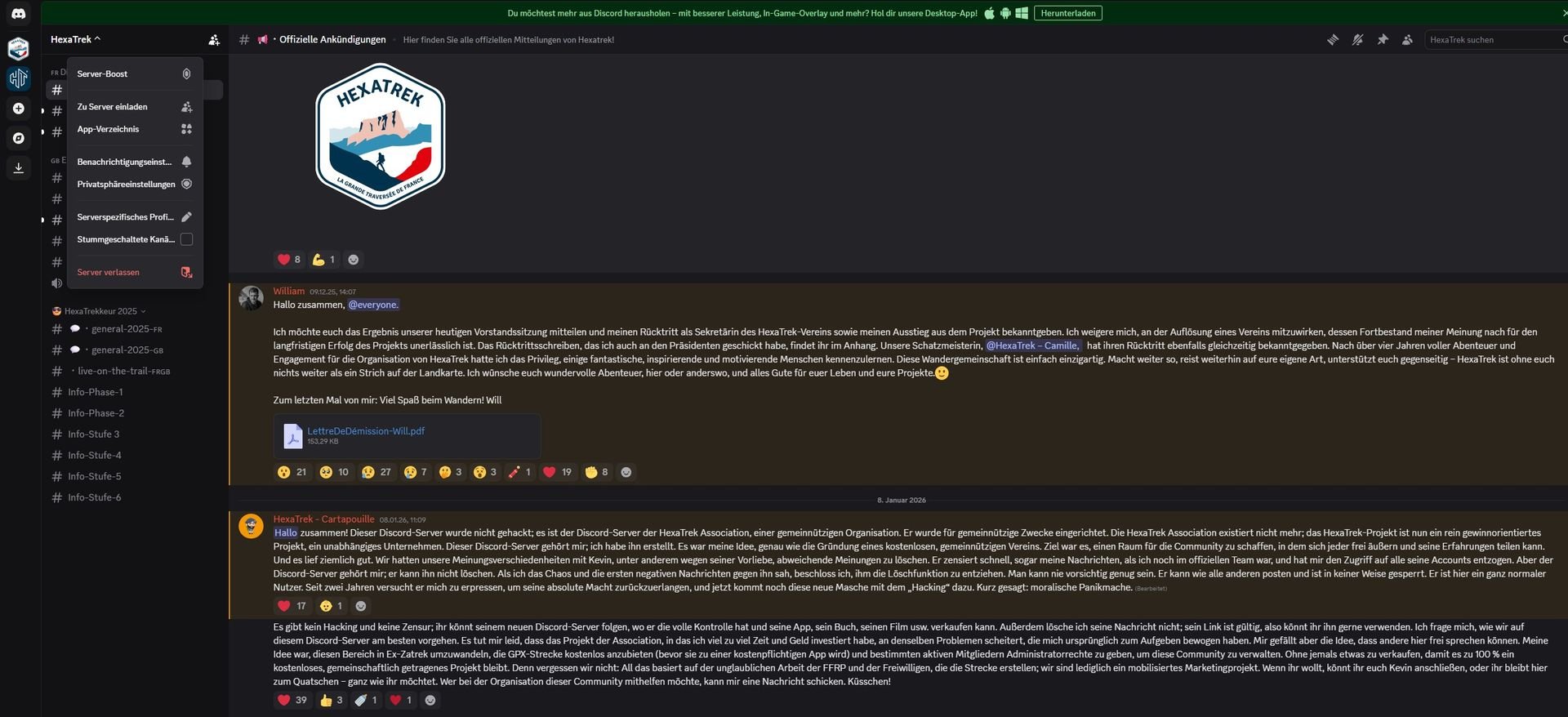 Es gibt wohl Stress im Hexatrek Verein, was da los ist - keine Ahnung. Jedenfalls ist etwas bei Discord nachzulesen.