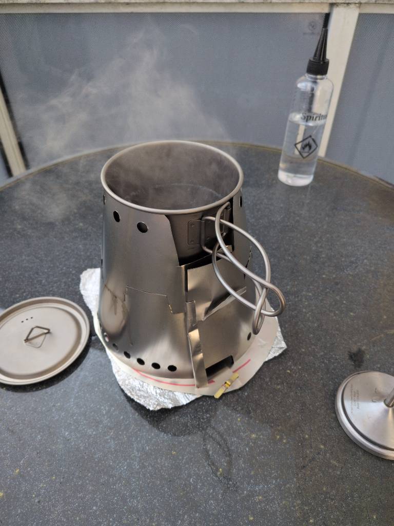 Hier mal ein Cone für einen 750ml Topf den ich mit dem Tool von Captain Paranoia gebaut habe. Ist ein Edelstahl Blech mit 0,08mm Dicke. Wiegt 57 Gramm.
