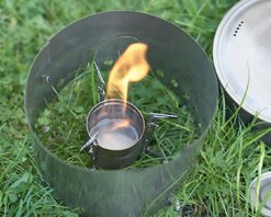 Ich habe mir Deine Fotos nochmal genauer angeschaut. Du stellst den Windschutz ganz eng um den Brenner.