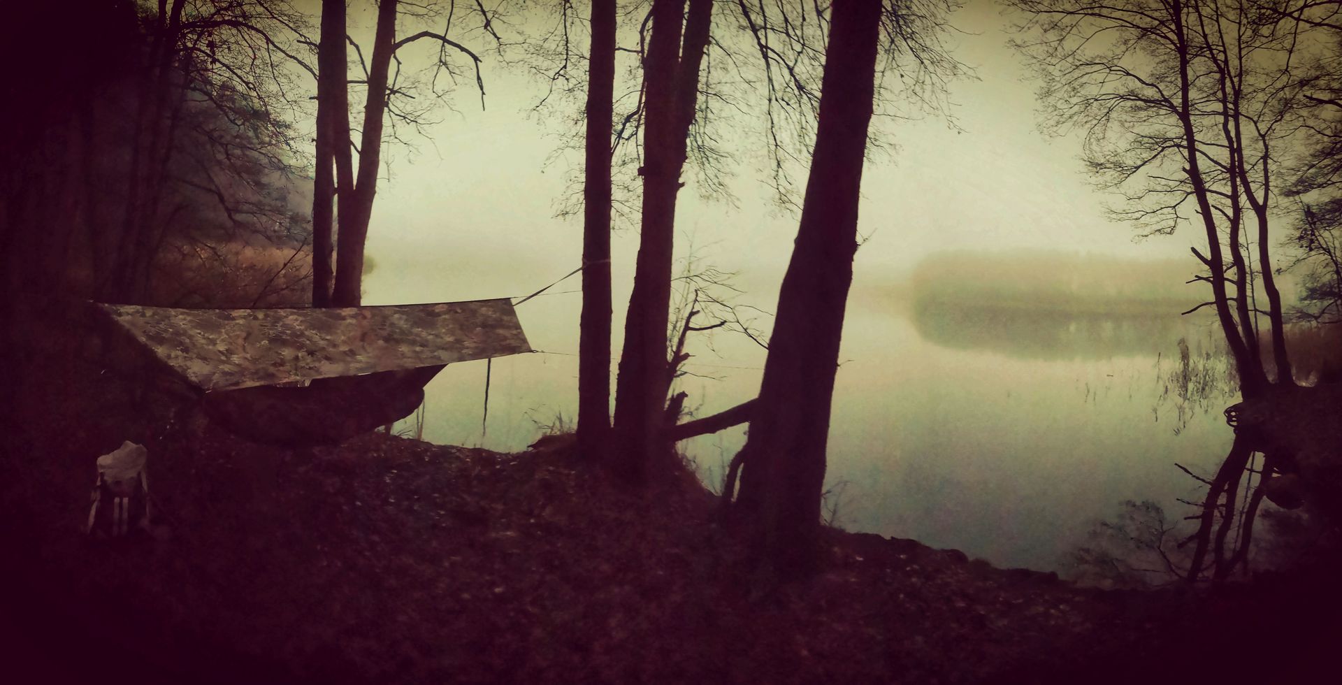 Im Faltboot/ Kanadier auf dem Wasser übernachtet.