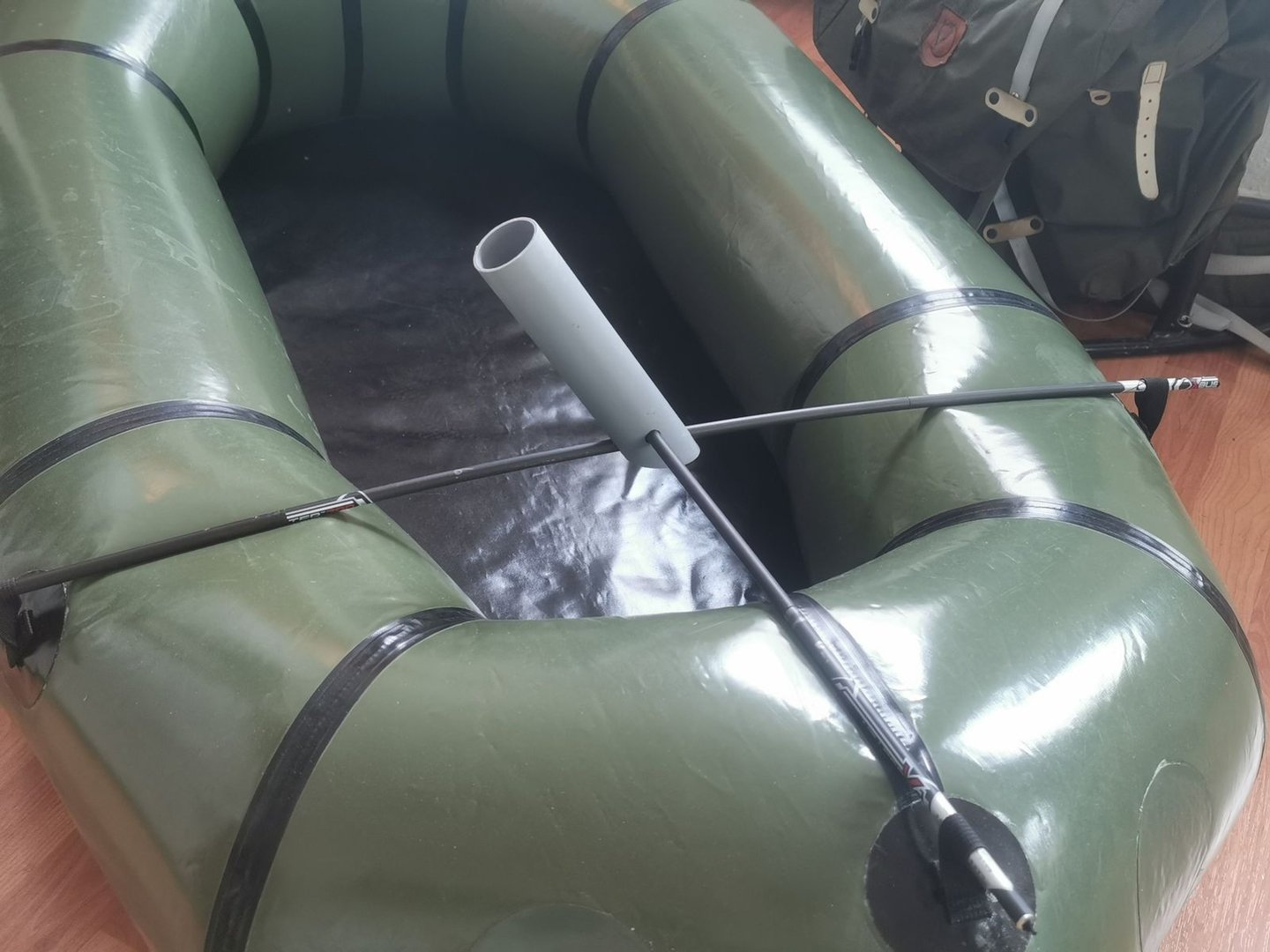 Um im Packraft beim Angeln die Hände frei zu haben, bietet sich ein 'rod rig' an.