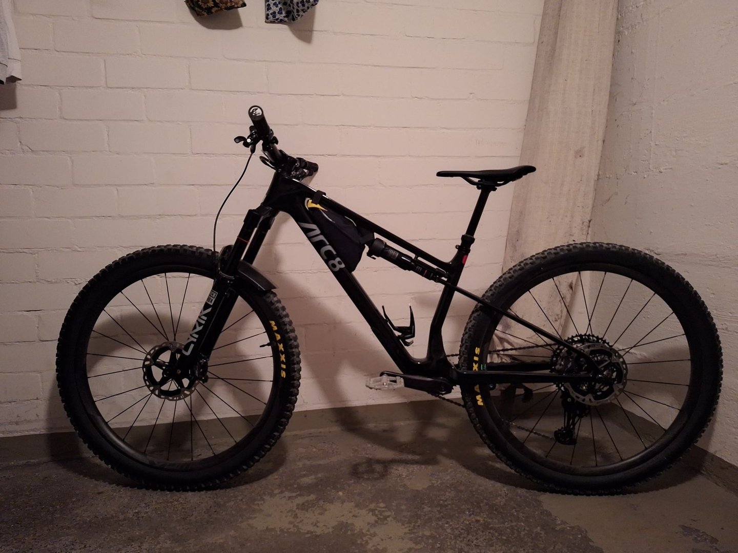 Ja das Zelt hängt an meinem 780mm Mtb Lenker. Es ist ein riesiges Wechsel Tempest4. Mit 3.2kg am Lenker zu schwer für ambitioniertes Trail fahren. Langsam geht aber noch vieles. Das Zelt ist im Original Packsack.