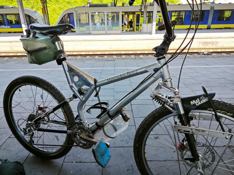 Zunächst musste dieser undefinierbare Haufen noch auf dem Bahnsteig von Osnabrück in ein Fahrrad verwandelt werden.(was auch gelang).