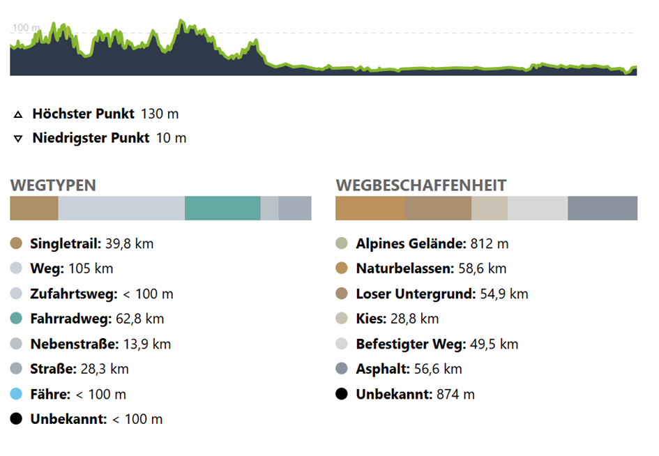 Wir haben allerdings versucht, vor allem den Wanderweg zu befahren, der natürlich viel naturnäher ist, als die Radwege. Zu Konflikte mit Wanderern konnte es nicht kommen, wir haben keinen einzigen getroffen.