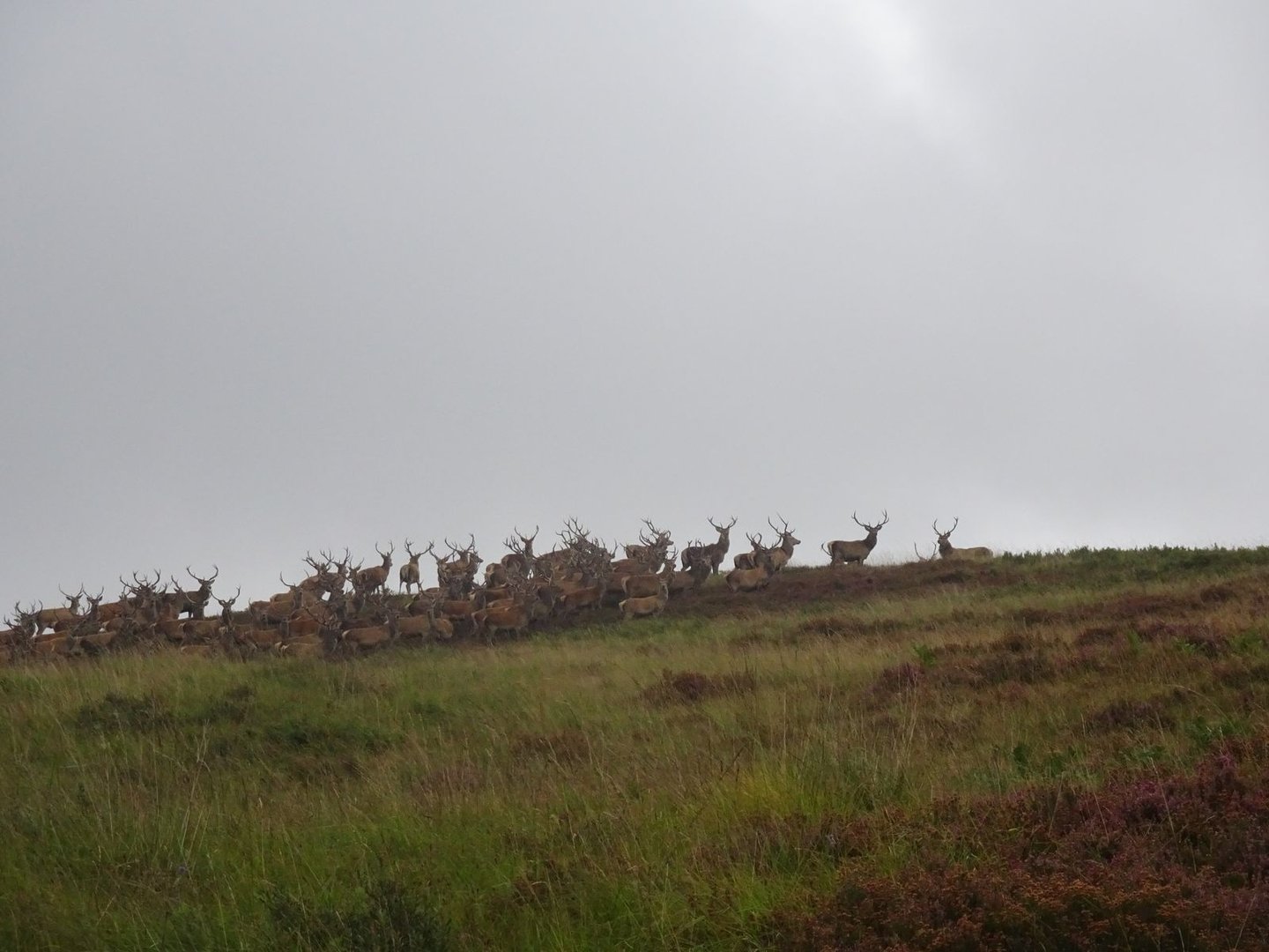 Anschließend liefen wir durch schönen Wald über wildromantische Brücken und mit einem kleinen Abstecher zum “Whim Folly” mit Blick über das Blair-Estate weiter, bis der Wald plötzlich an einem Zaun endete. Dahinter lag offenes Gelände. Zum ersten Mal waren wir in der typischen Highlands-Landschaft, von der wir noch so viel mehr sehen würden in den kommenden Wochen. Kaum durch den Zaun bekamen wir eine riesige Herde Rotwild zu sehen.