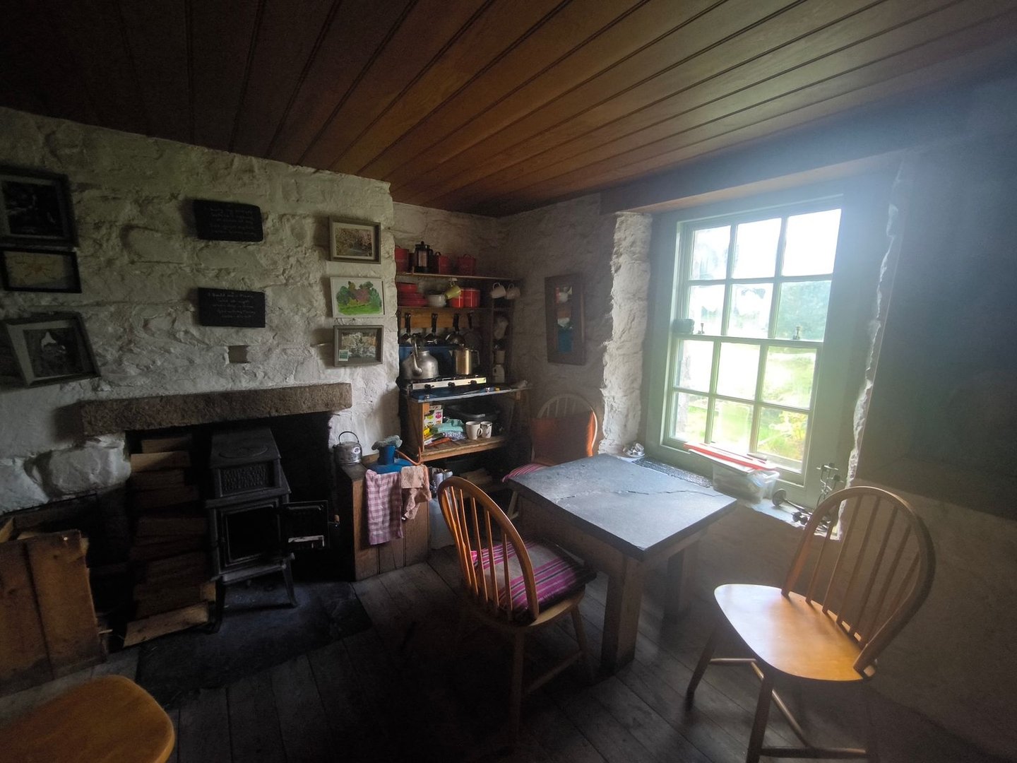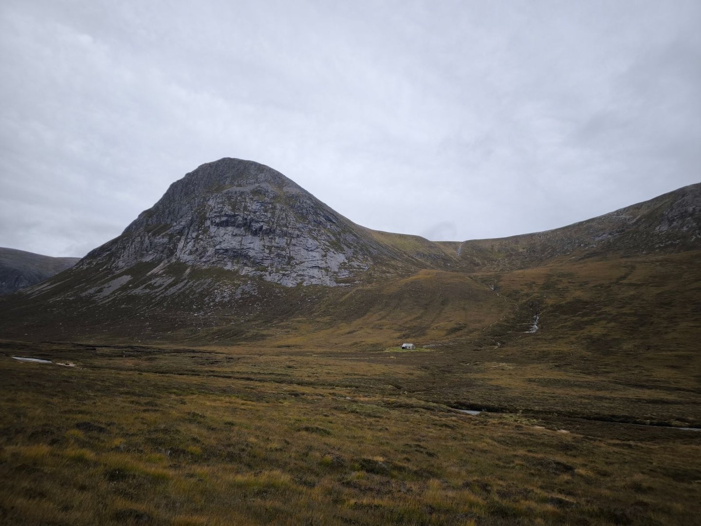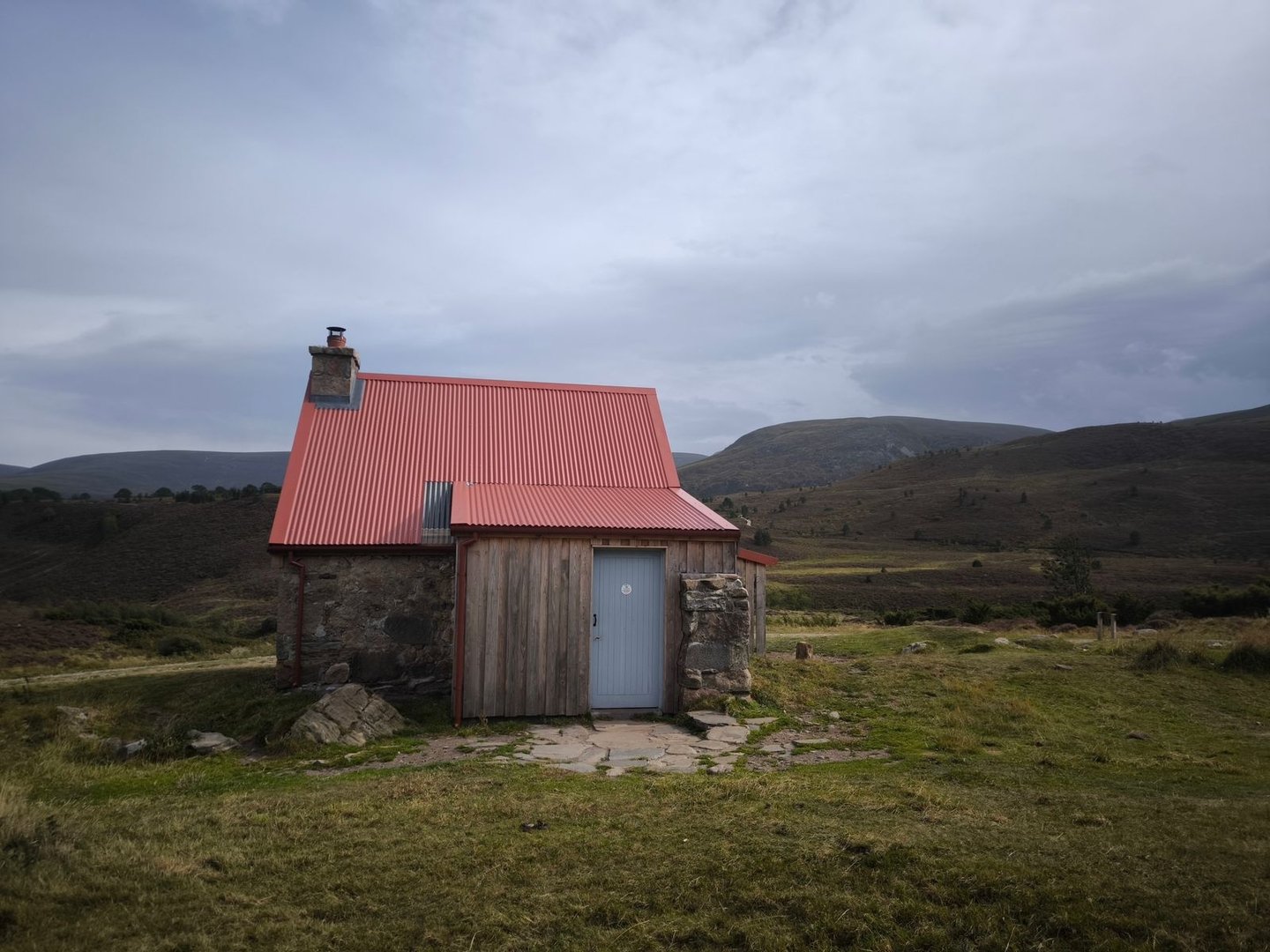 Der restliche Weg war dann geprägt von immer neuen und tieferen Blicken in die weite Landschaft, bis wir schließlich die Bothy erreichten, die tief in einem Einschnitt liegt, wodurch man sie erst sehr spät sieht. Da kurz vor dem Erreichen unseres Tagesziels Regen einsetzte, haben wir es uns dann auch direkt in der kleinen Hütte gemütlich gemacht.